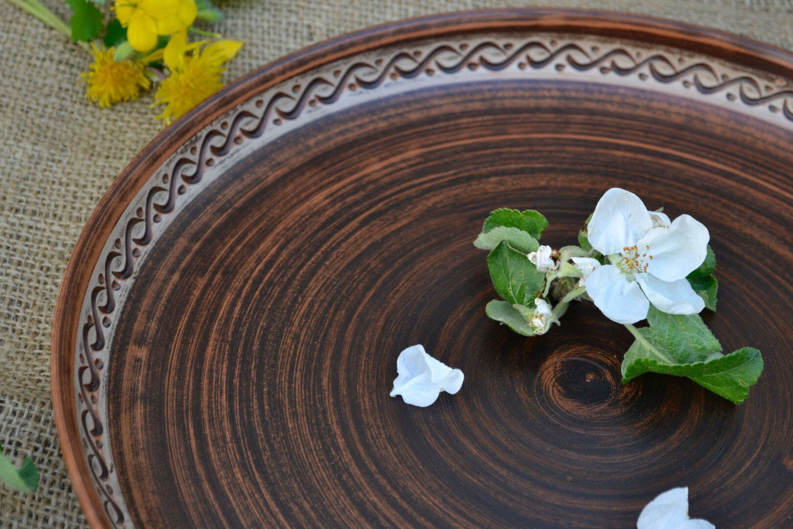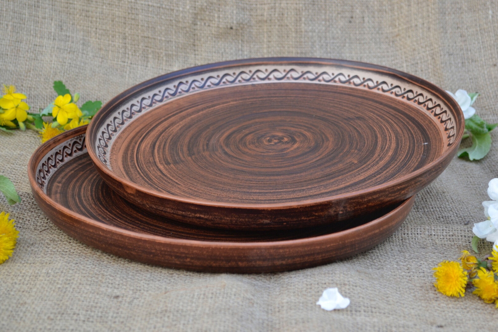 Handmade Clay Pizza Plate for Pizza Cake Sandwiches Ceramic Chargers Plates Pottery Gift for Mother Handcrafted Tray Dish