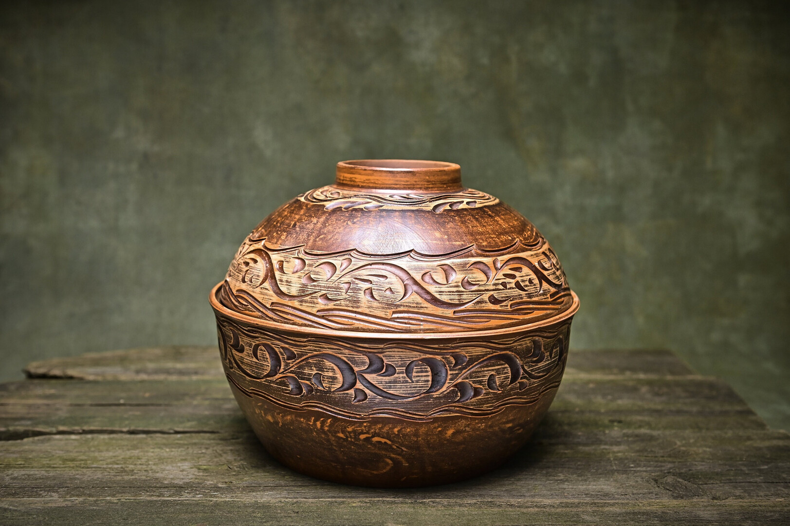 Handmade Red Clay Breadbasket Large Ceramic Casserole Big Pot Saucepan Rustic Kitchenware
