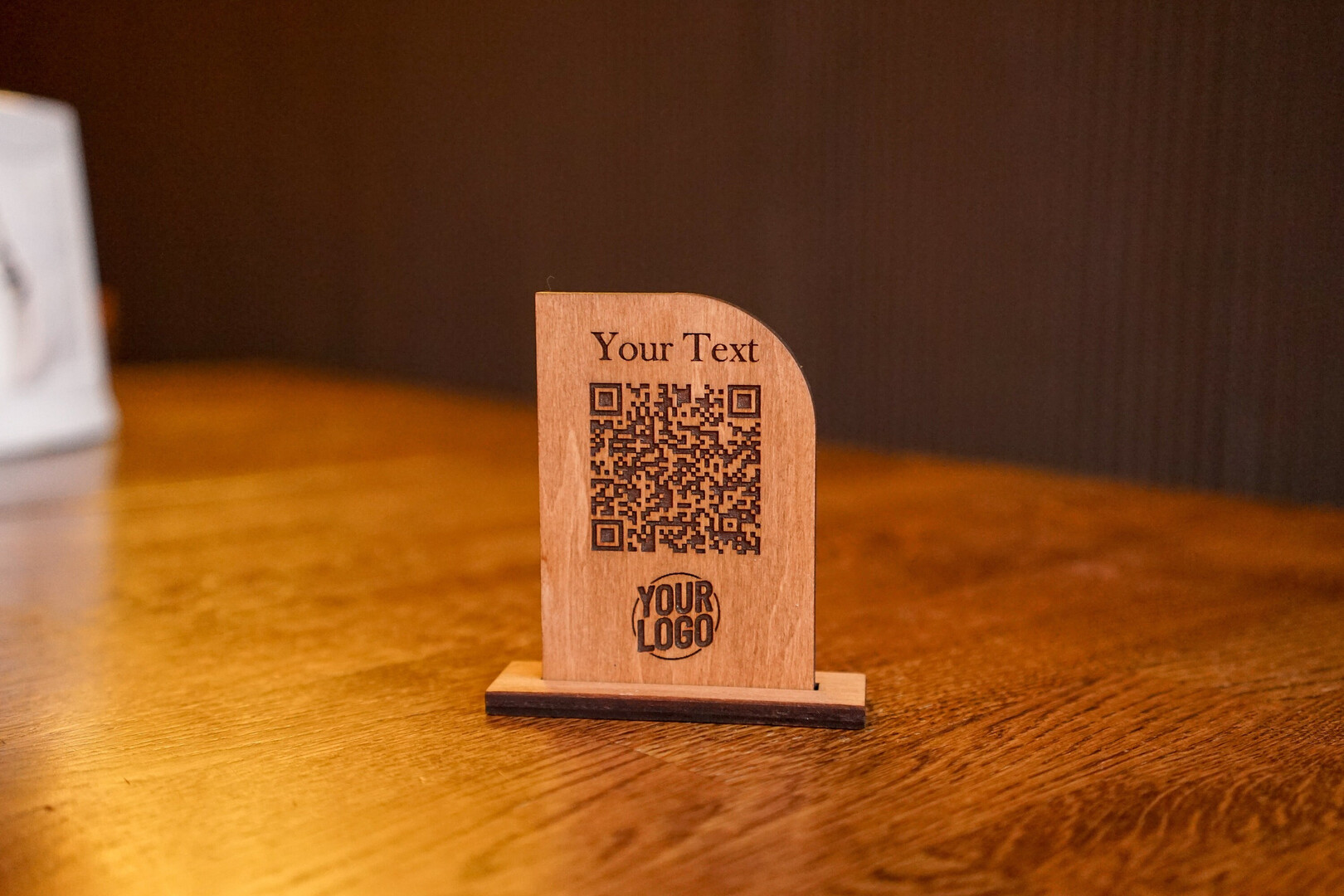Personalized QR code menu, QR code menu sign, Wooden qr cod sign with your custom text and business logo