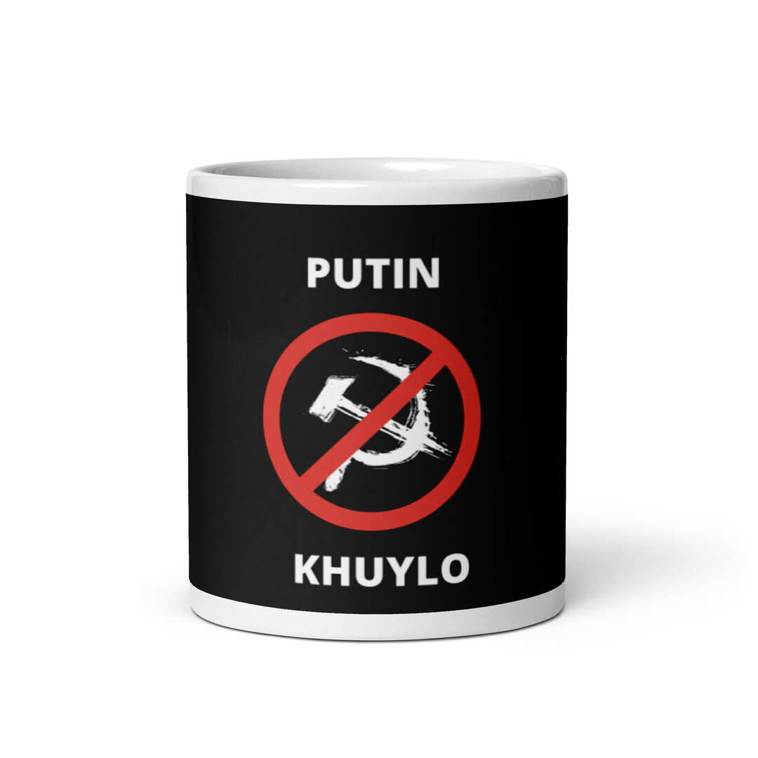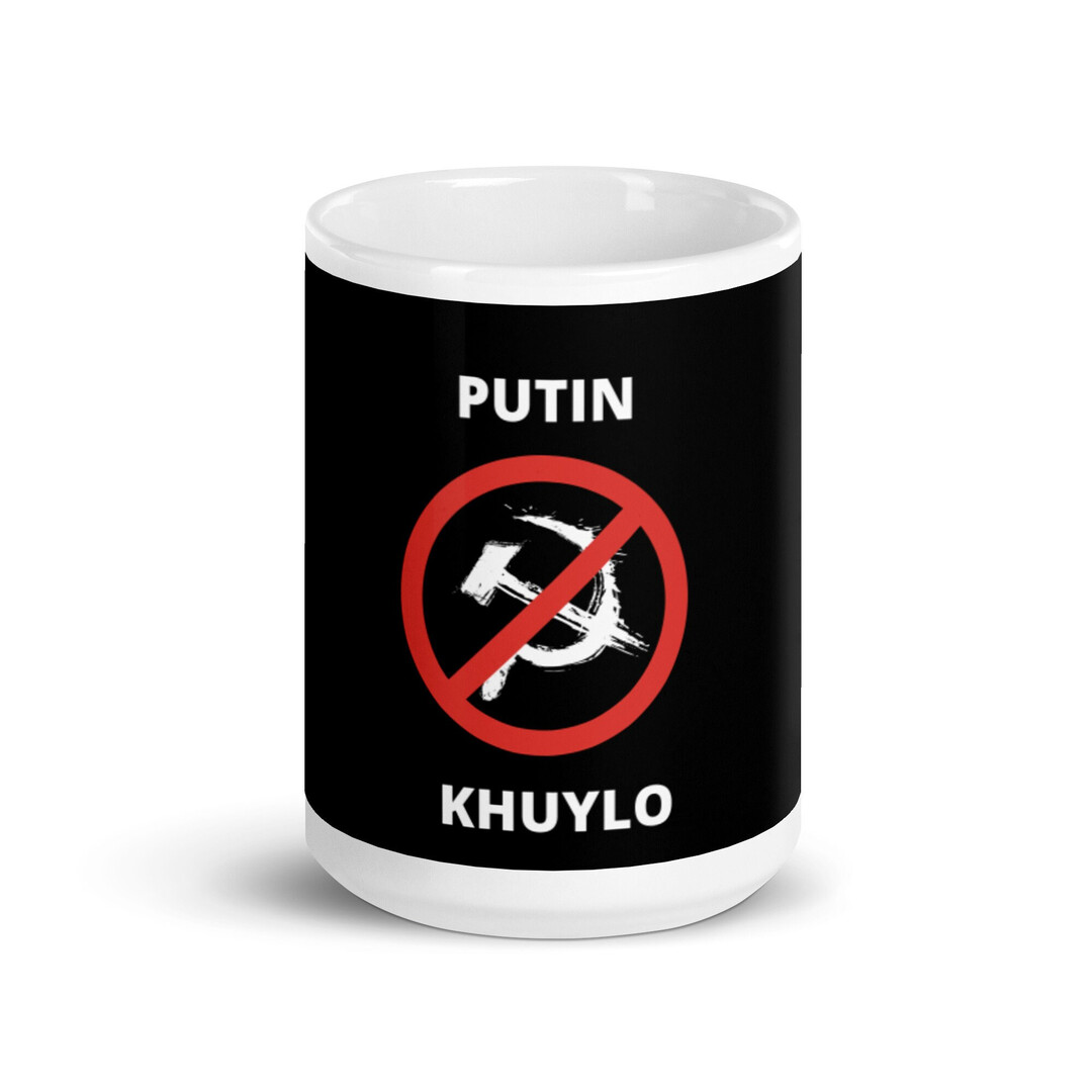 Putin Khuylo Black White Letters Print Graphic Ceramic Coffee Mug Cup for Water Tea Drinks