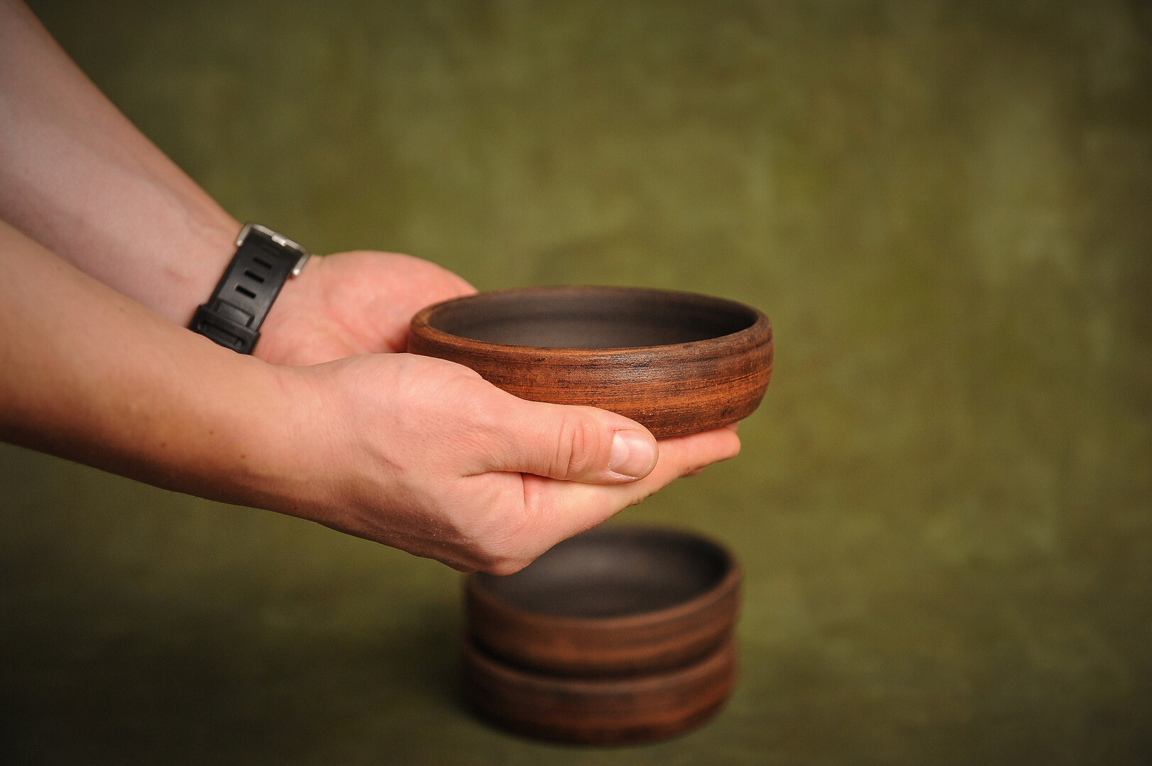Set of ceramic frying pan Georgian ketsi unglazed handmade clay oven plate ceramic dish brown round plate 5in | 13cm