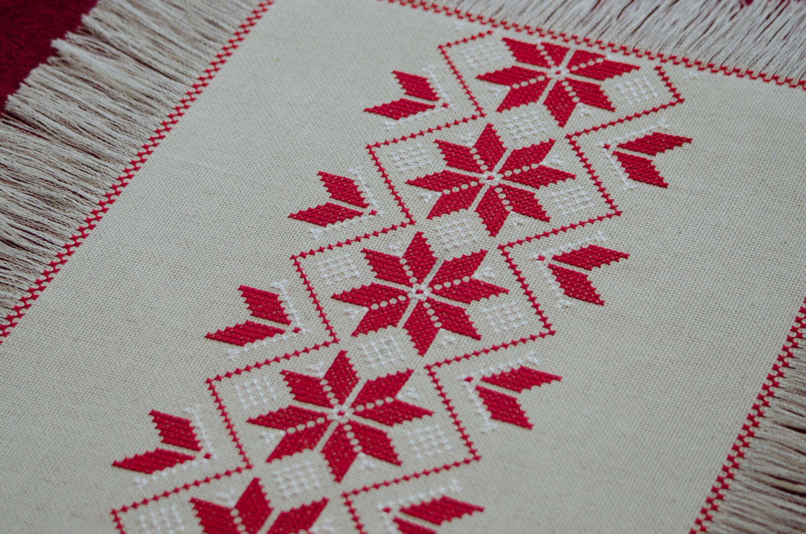 Wellspring - Star Alatyr - Linen Table Cloth with Embroidery - Ethno Ukrainian Traditional Pattern ( Slavic symbols )