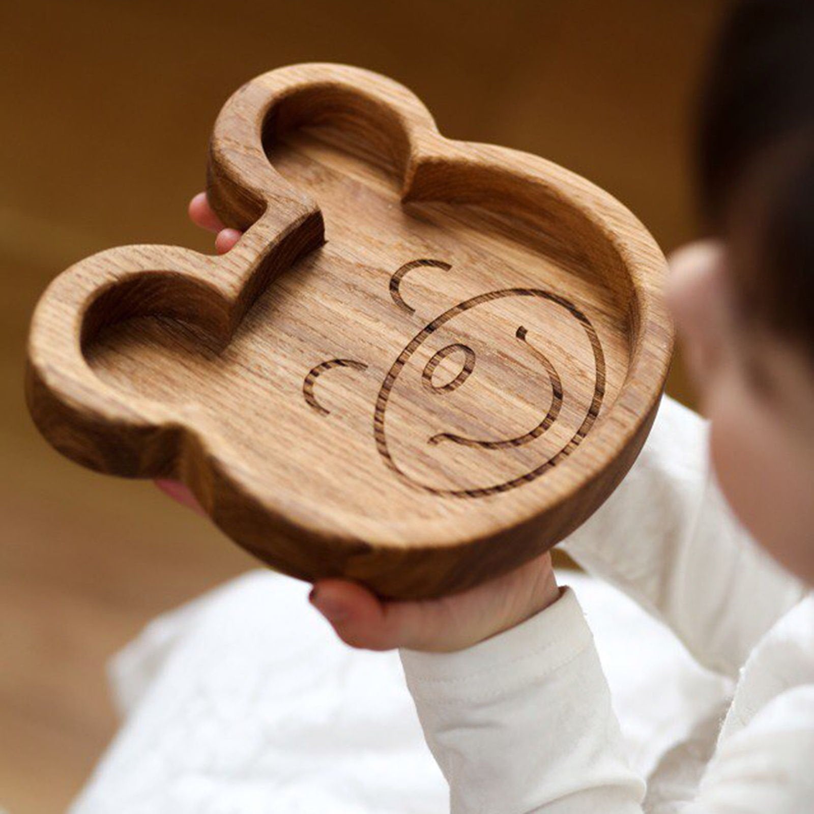 Wooden plate, kids plate, plate for kids, baby gift, wooden bear, bear, oak plate, baby shower gift, kids décor, kids meal