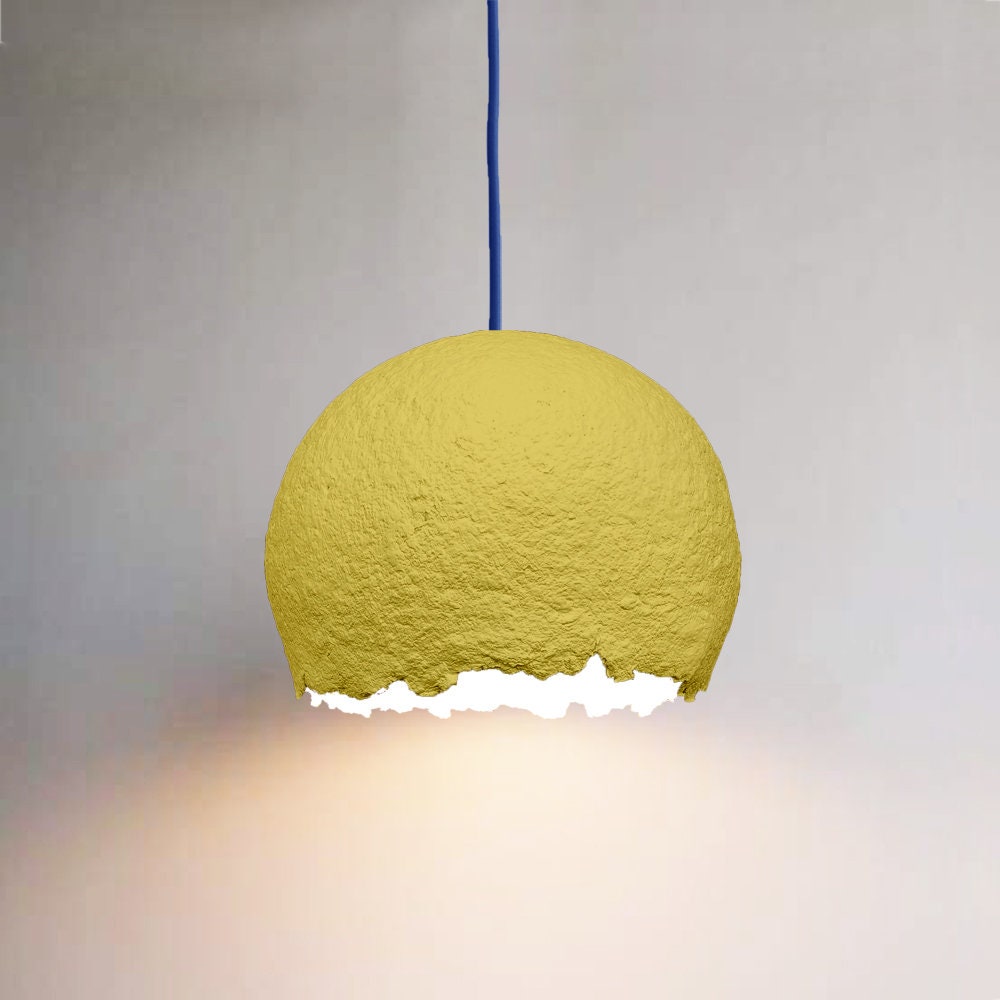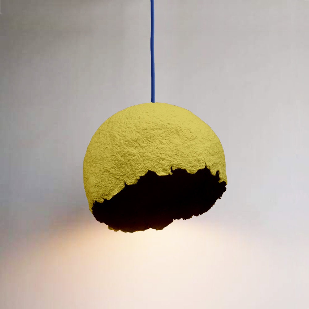 Art Deco Yellow Lampshade For Ceiling | Moon Globe Pendant Light | Paper Mache Moon Lighting | Living Room Pendant Ceiling Lamp
