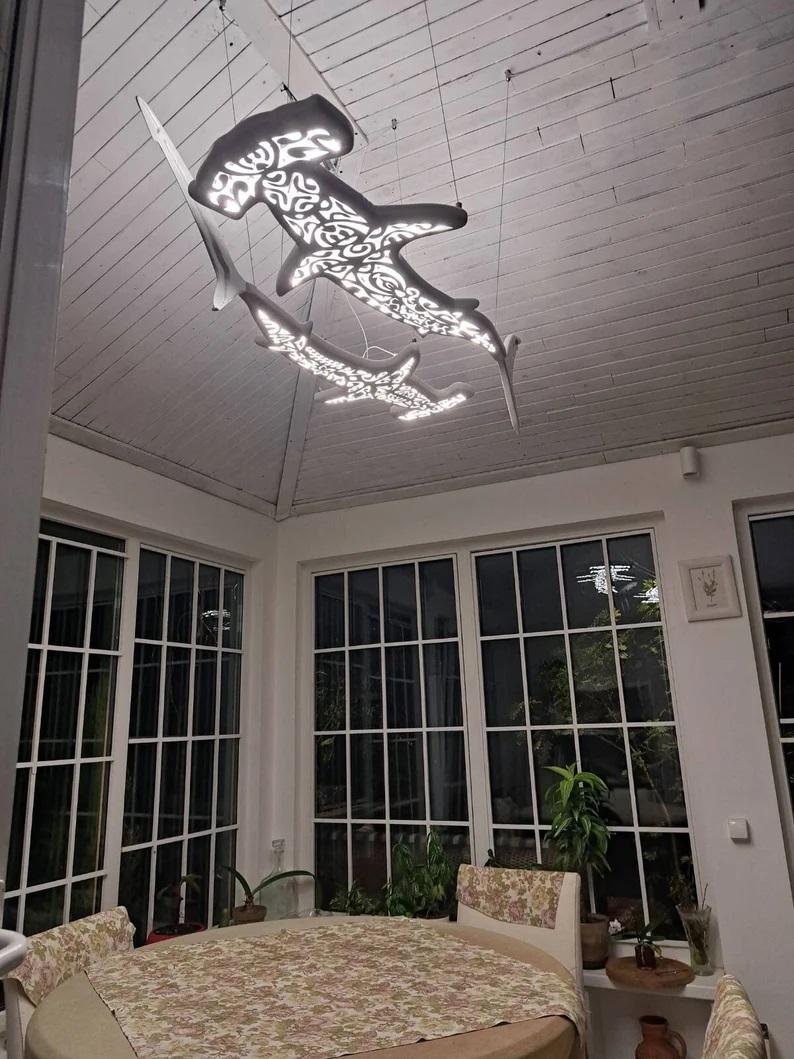 2 Handcrafted Hammerhead Shark Ceiling Lights