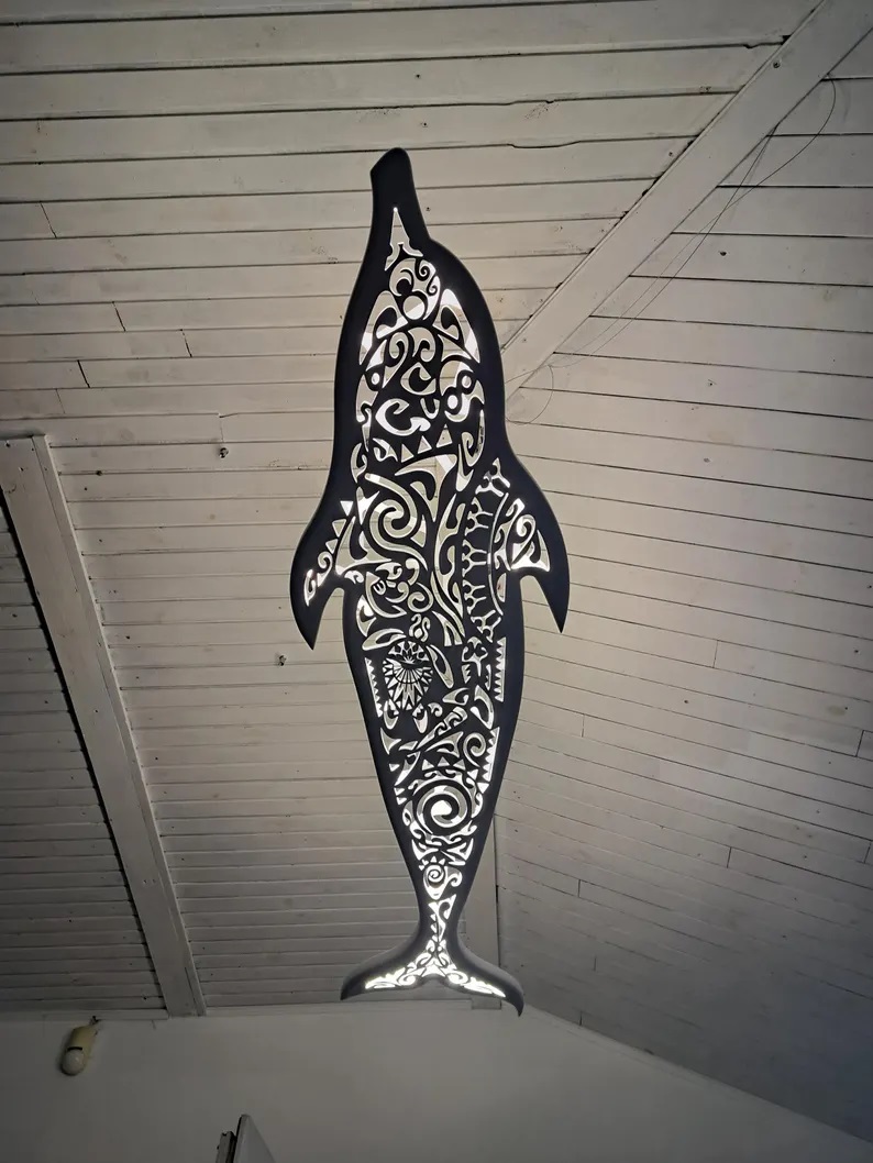 Handcrafted unique Dolphin ceiling chandelier in Maori surf style