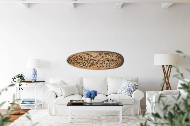 Surfboard-shape wall led light with maori pattern