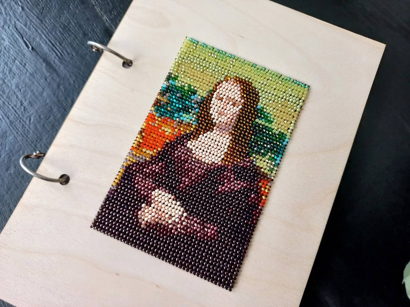 Wooden notebook A5 ring journal with beading
