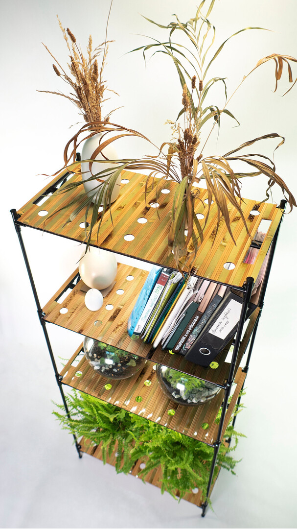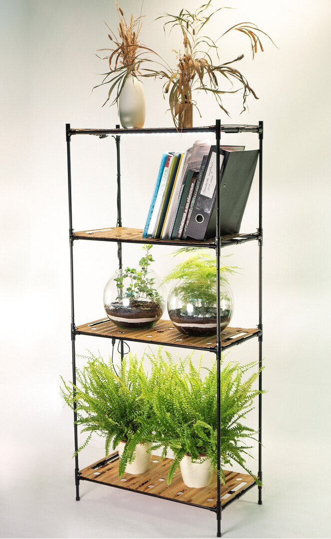 For USA Big plant stand Bashta XL with Full Spectrum Grow Light and Four Bamboo Shelves, Adjustable Stable Plant Stand