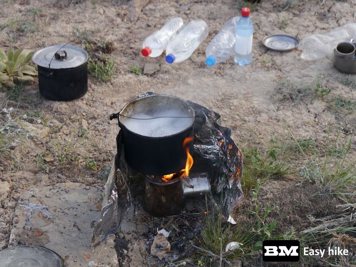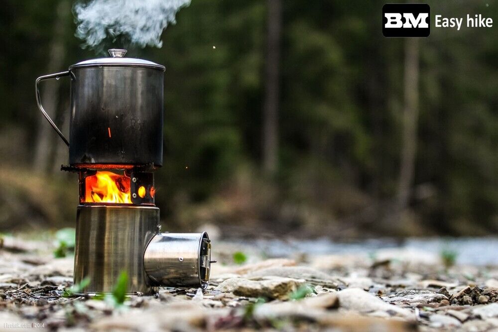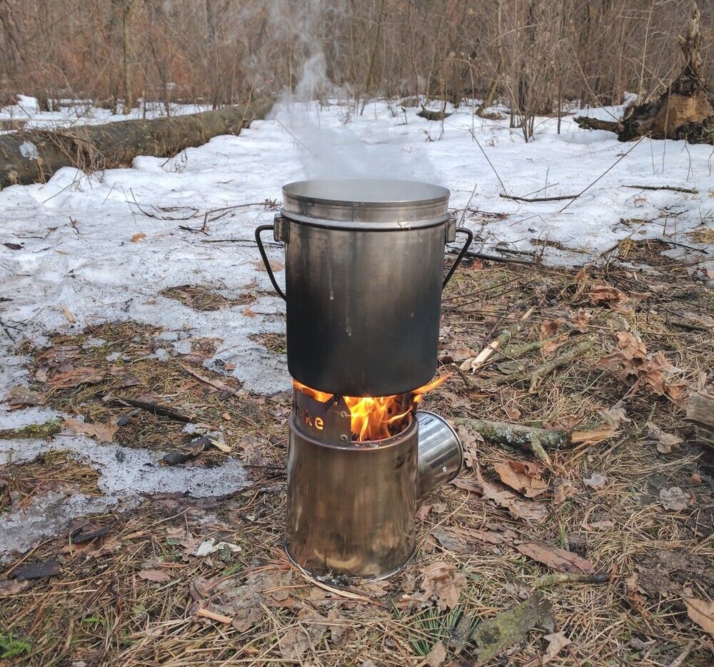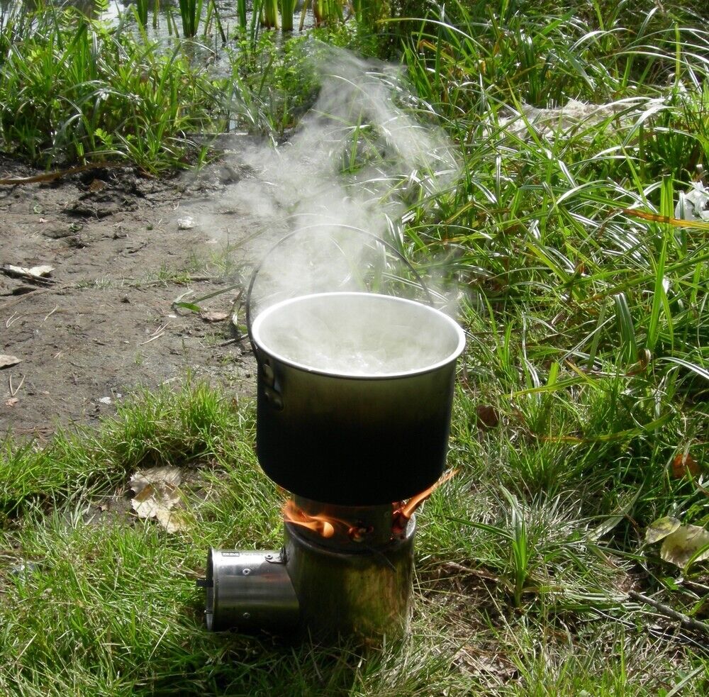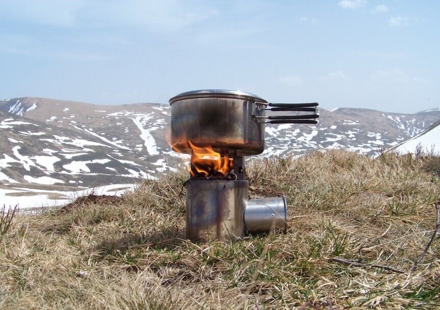 Branches, twigs, bark, and any other available solid fuel can be used as fuel.