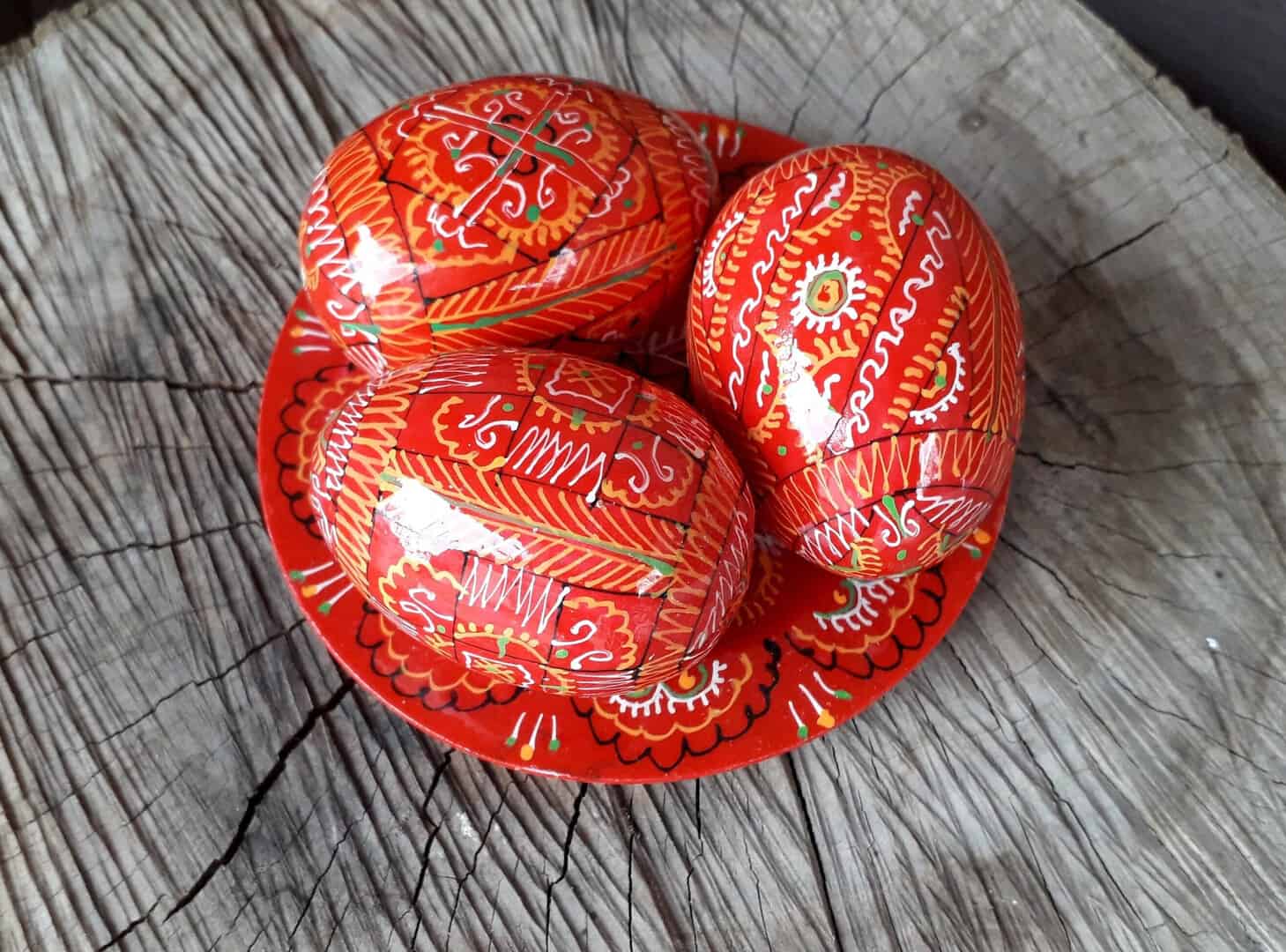 Set Pysanka Wooden Easter Eggs on Plate Painted Wooden Easter Eggs for a decor Ukraine Pysanka Ukrainian Pysanky 5''