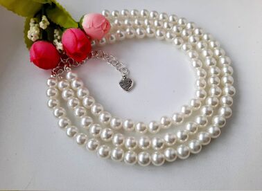 This elegant pet pearl necklace handcrafted from 8mm white glass pearls with a double bead strand. It is decorated with rhinestone dividers and an oval pink-colored glass bead in the middle. In this beautiful pet jewelry your pampered girl will look graceful and radiant at any special events. It's important to me that your pet will be happy and comfy in all my designs. The clasp of the necklace has an adjustable extension chain measuring about 1.0 inches for more flexibility. Please take your pets neck measurements and choose the appropriate size before ordering. Email me if you have questions. I'd be happy to help with your order. Can't find your size? Custom sizing is also available! Pet neck sizing chart: 7 - 7.5 inch neck 8 - 8.5 inch neck 9 - 9.5 inch neck 10 - 10.5 inch neck 11 - 11.5 inch neck 12 - 12.5 inch neck Measure your pet's neck measure where the collar normally sits and allow 1 fingers room, for the collar to move freely so your pet will be comfortable and happy in their collar... This necklace is delicate and meant to be used as jewelry only. Always supervise pets when wearing any jewelry. To protect your pet's jewelry from wear and tear, when not in use, store in a small plastic baggie.