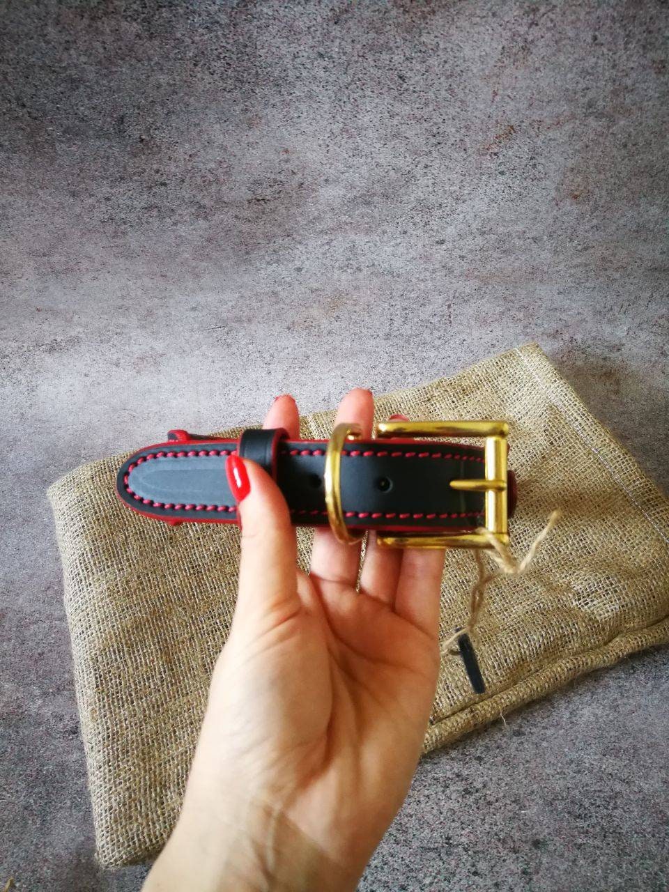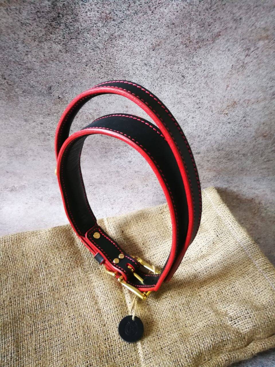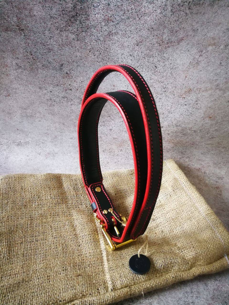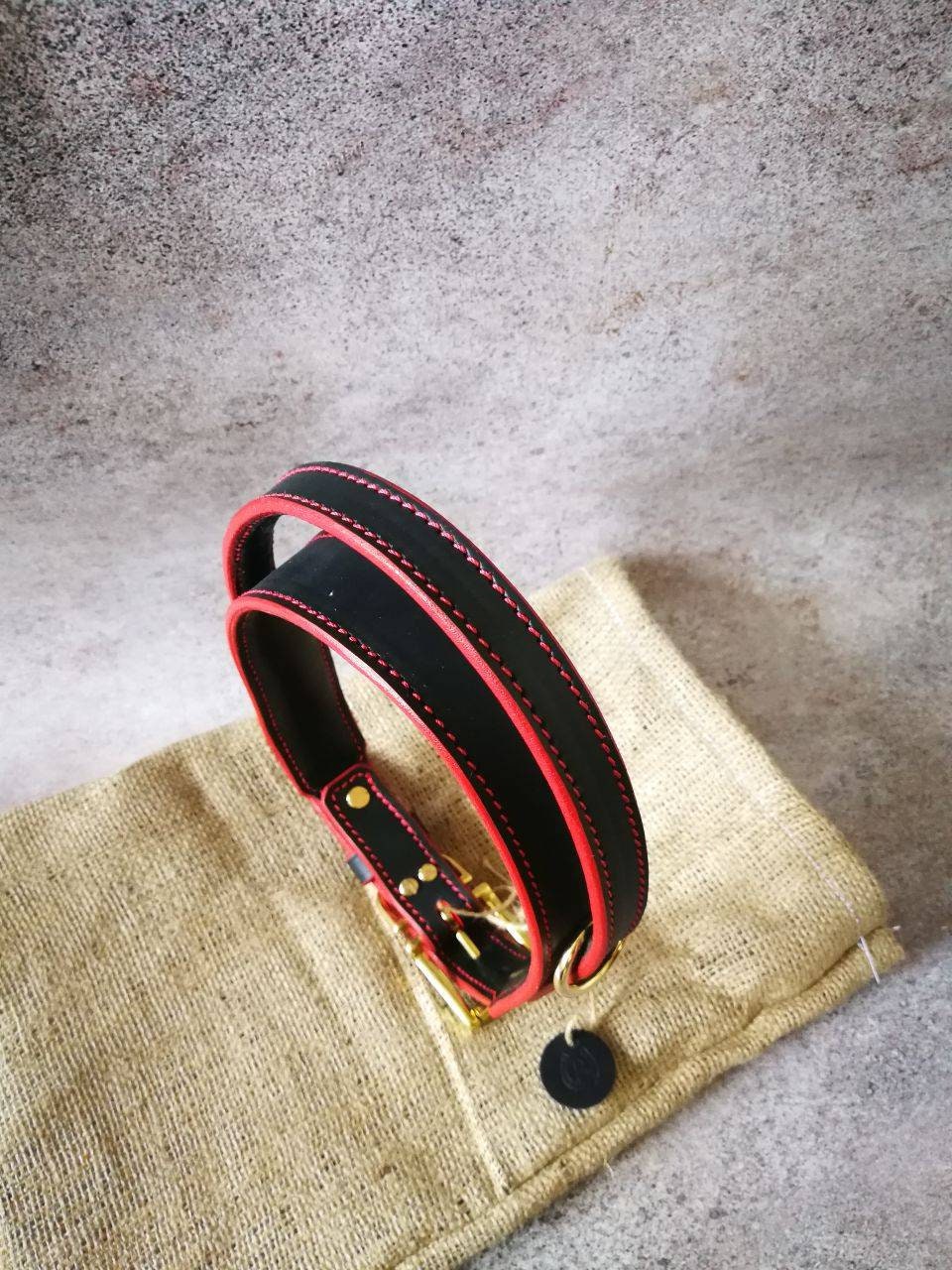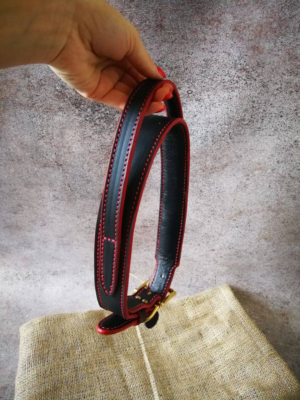 Black and Red Leather Dog Collar with Handle, Comfortable Handle Dog Collar, Padded Leather Dog Collar, Black Dog Collar with Red Stitch