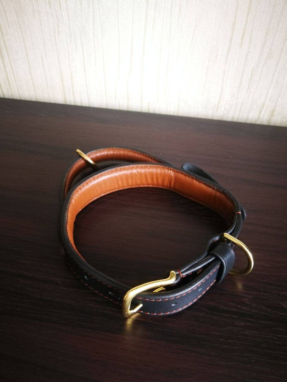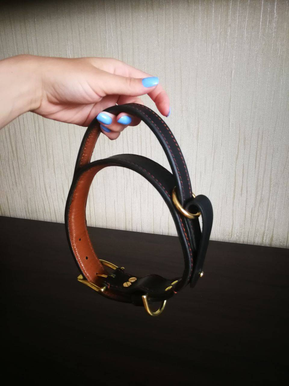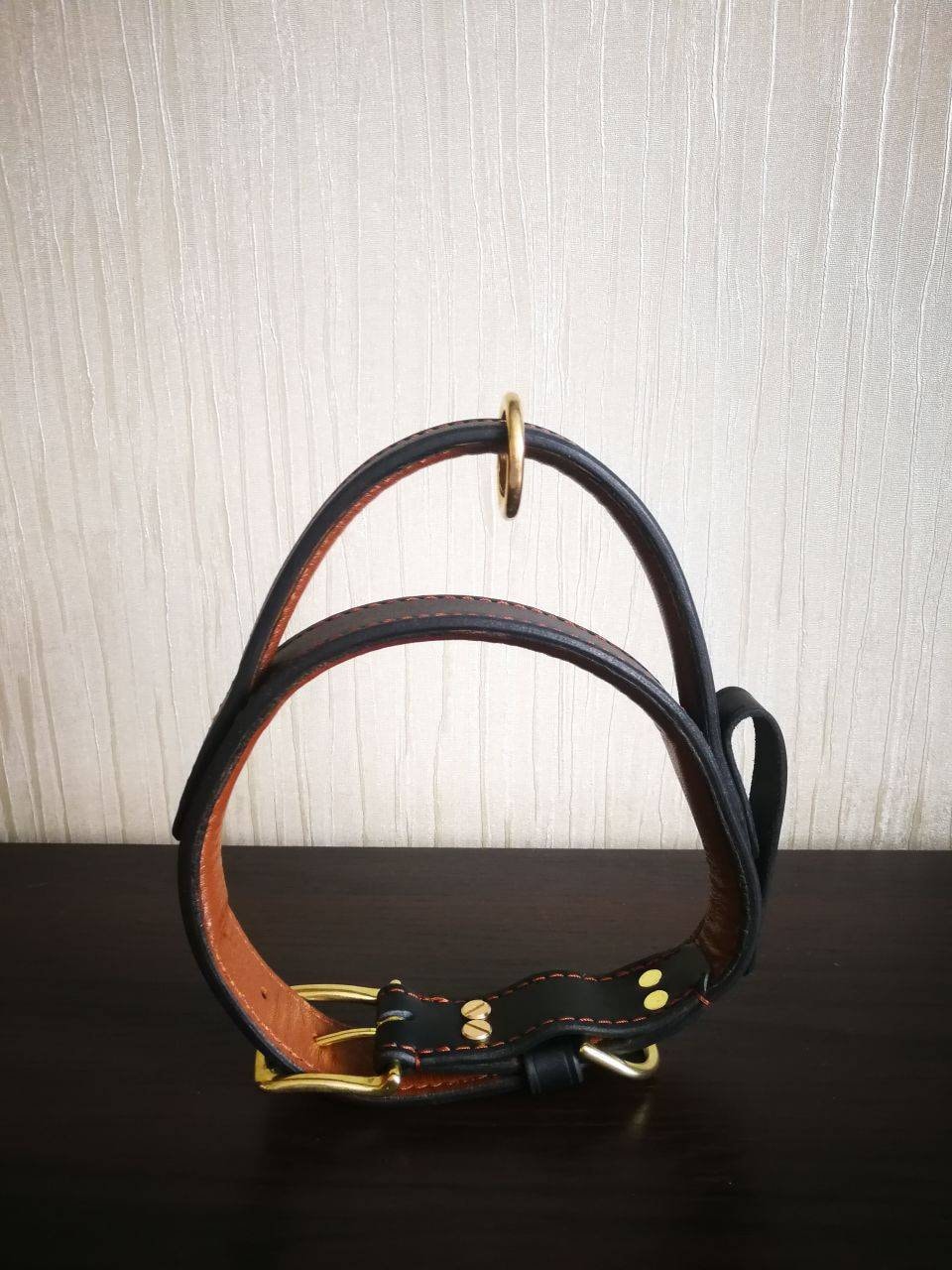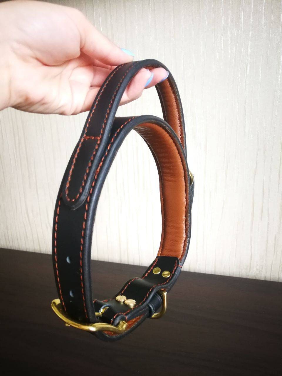 Handstitched Leather Dog Collar with handle, Soft-padded Leather Dog Collar, Custom Leather Dog Collar with handle with ring of solid brass