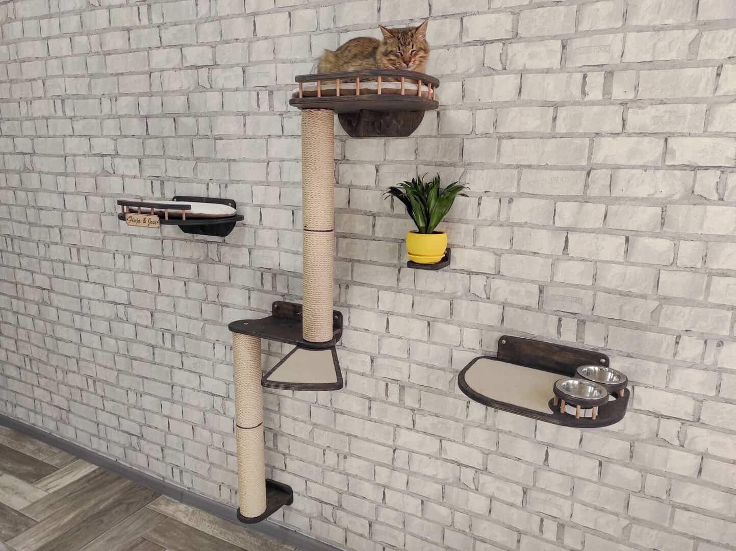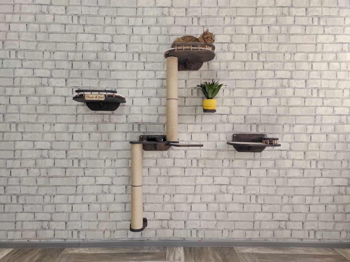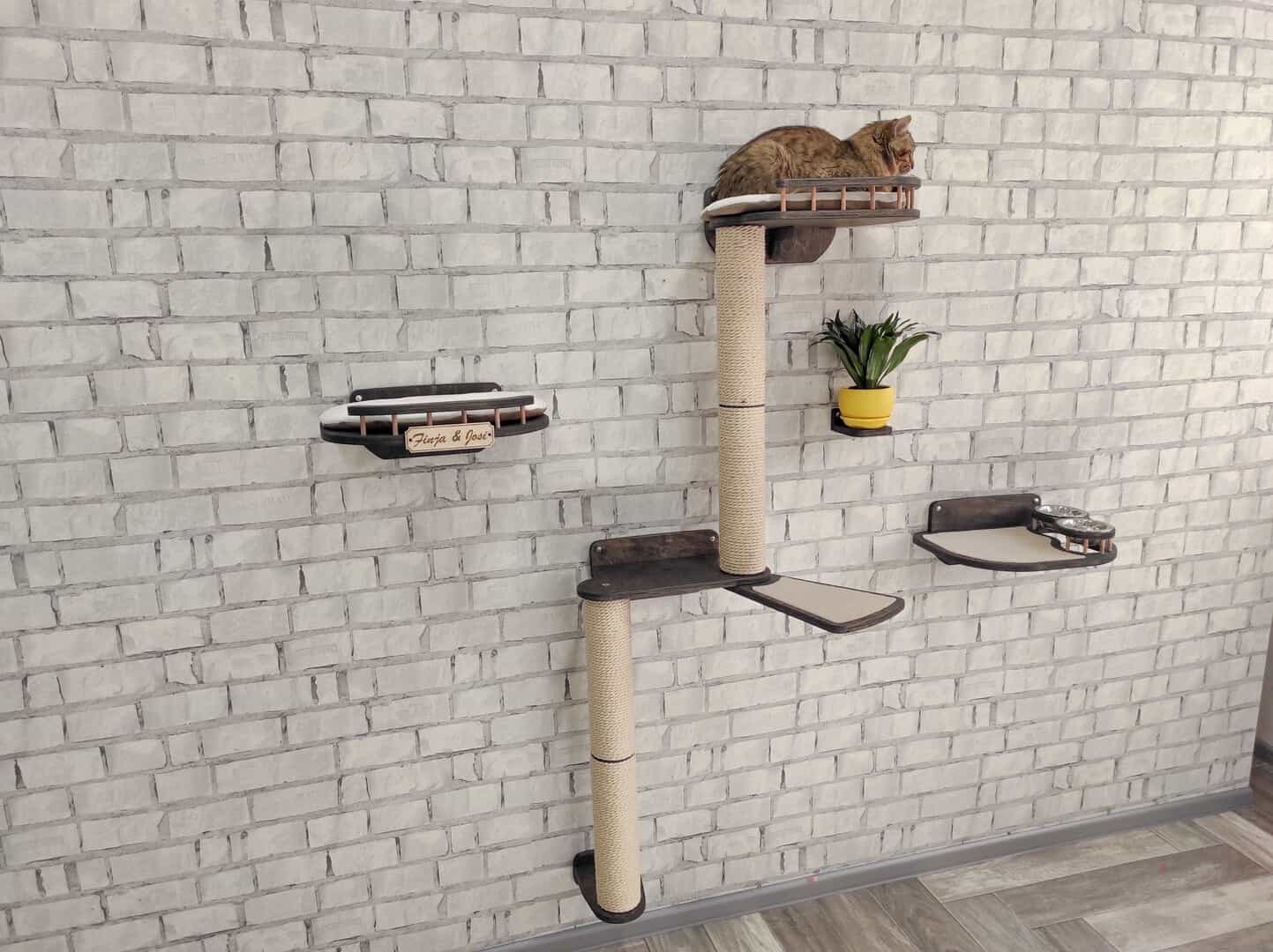 All elements of the set are very reliable and environmentally friendly. We use birch plywood impregnated with environmentally friendly oil and sisal rope as natural materials. The thickness of the plywood used can support large cats. The fixing of the shelves is simple and does not require any special skills. We also offer fasteners for brick or concrete walls.