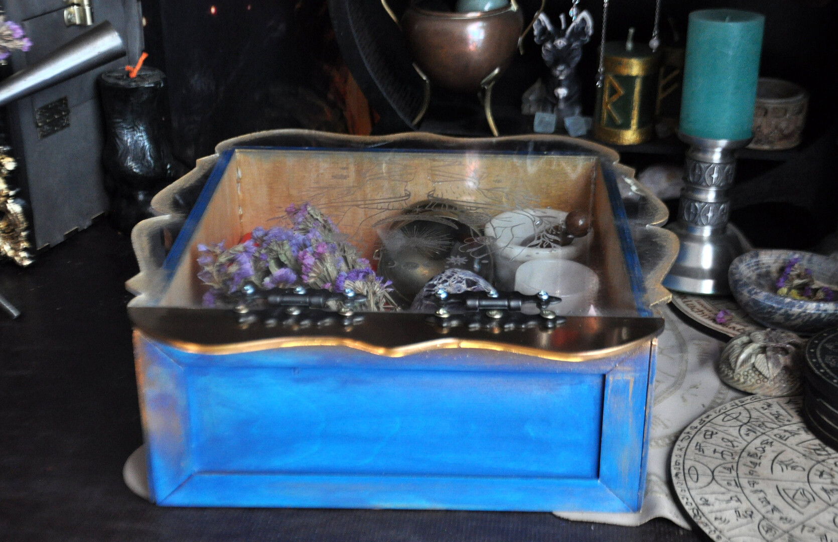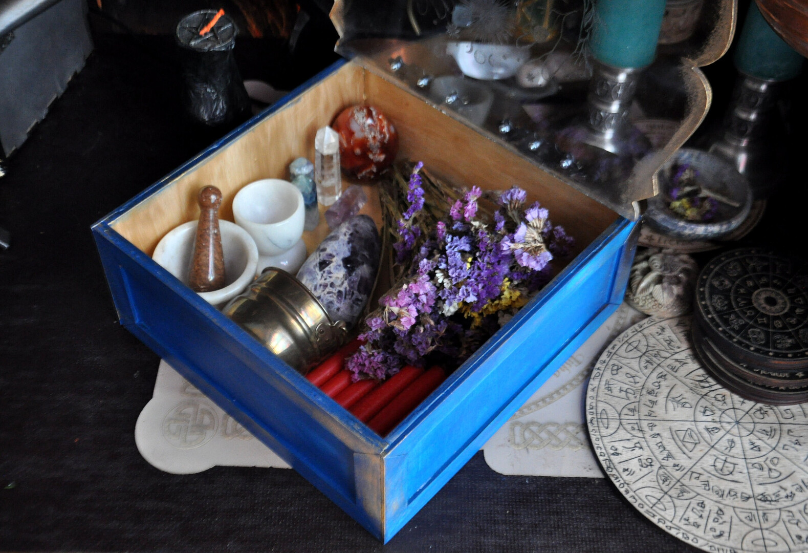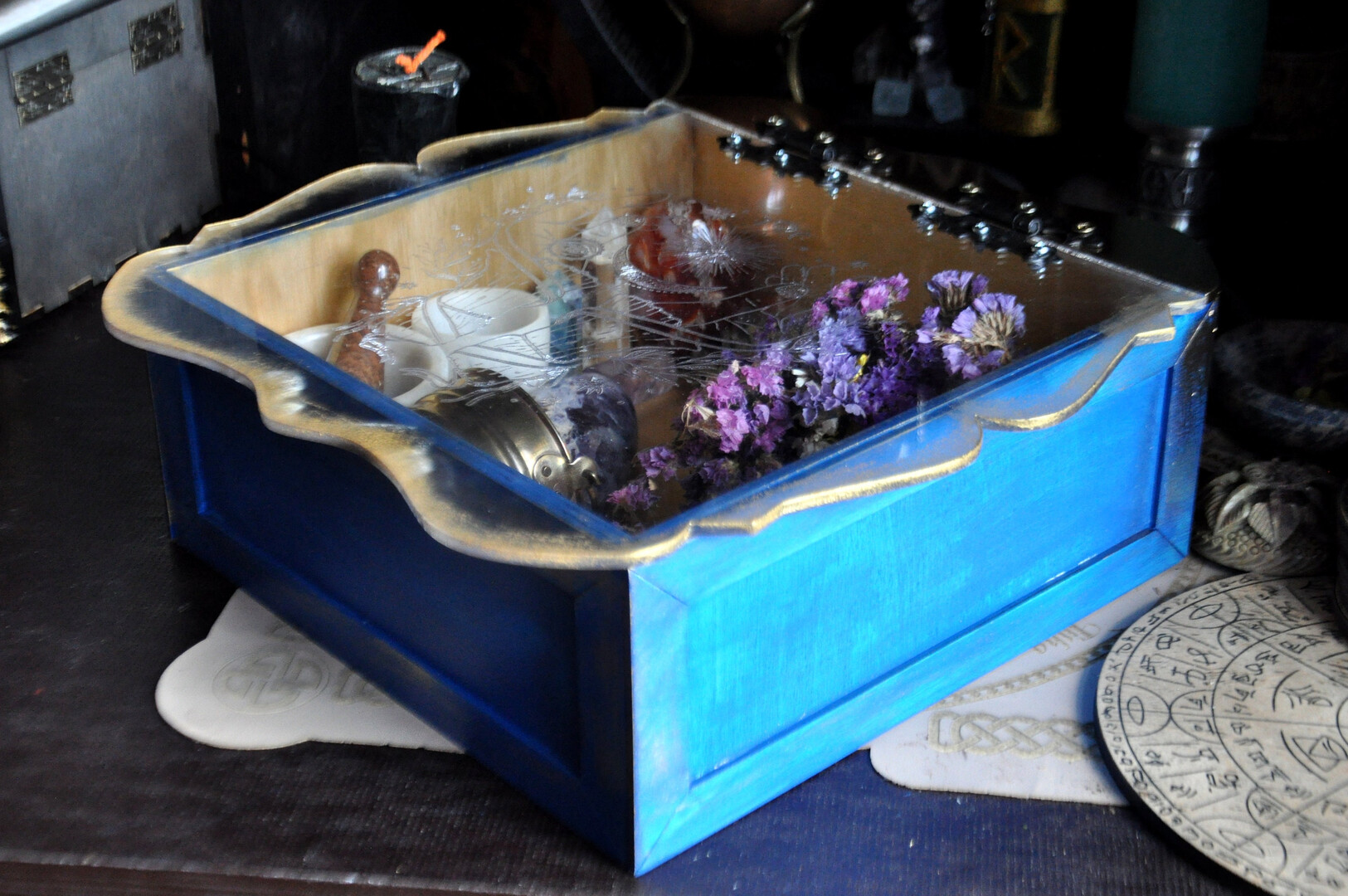 Crystal box - Magic hands Divination. Box with glass lid. Square box with window for crystals storage and witch supplies