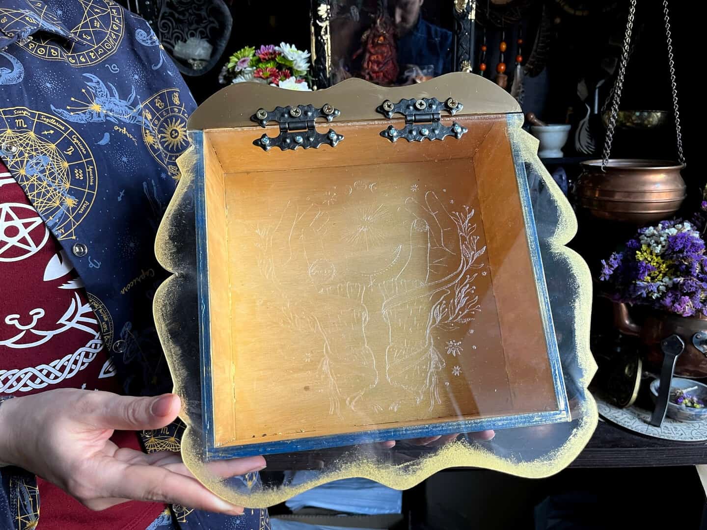 ???? Box with plexiglass engraving lid for crystals storage "Divination". Also it's fits good for jewelry, tea or your craft supplies. ????Consist on: ONLY box!!! Decor on photos are simply decor:) ????Material: birch (plywood), plexiglass (lid). ????Size of a box: W 30 cm/ 11.8 in L 30 cm/ 11.8 in H 10 cm/ 3.9 in ????Inner size: W 23cm/ 9 in L 23 cm/ 9 in D 9 cm/ 3.5 in