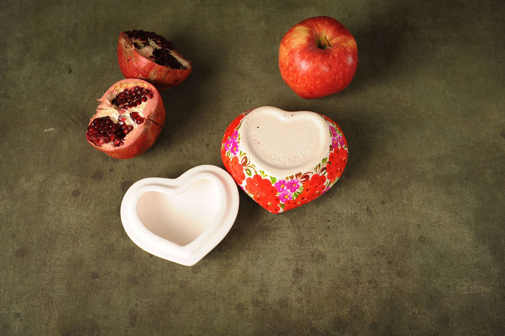 Hand Painted Small Ceramic Casket Clay Heart Shape Box Valentines Gift Handmade Trinket Jewelry Box