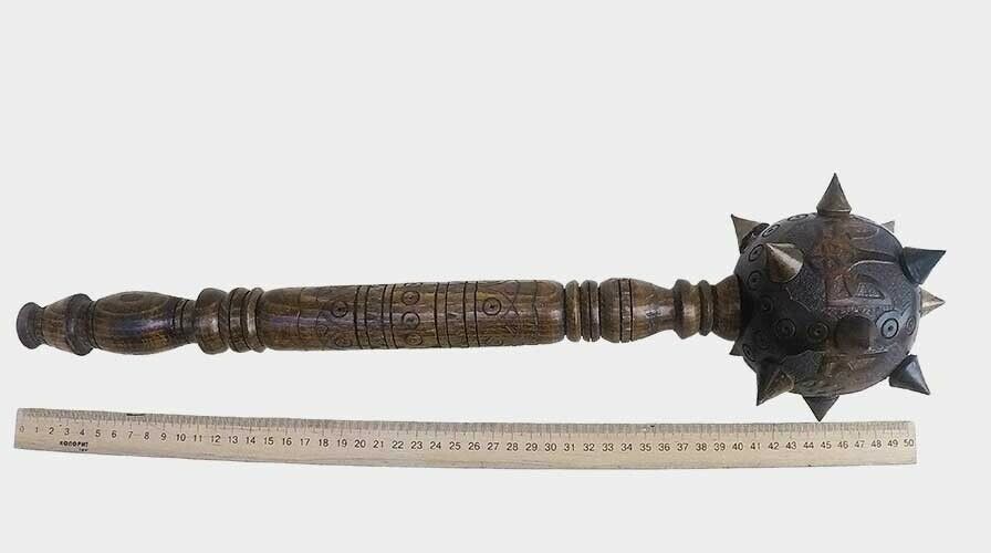 Handmade wooden mace with a trident, 50 cm long (Деревянная булава)