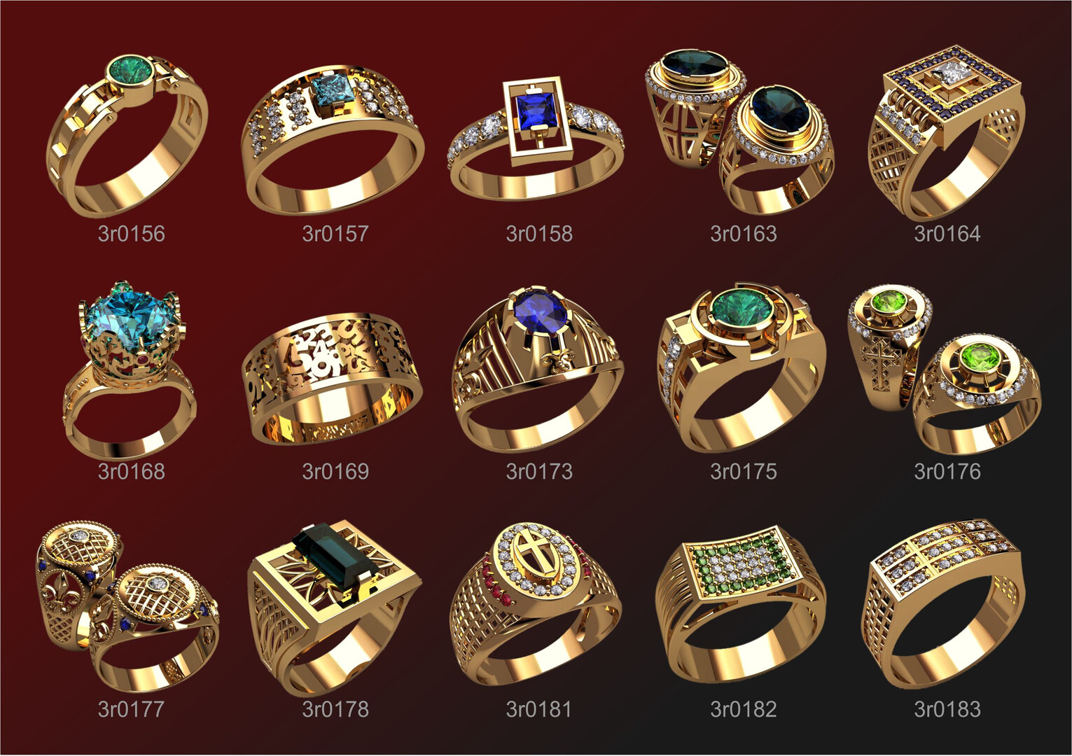 Set w05_3r15x2 15 pairs of wax models of men's rings for lost wax casting. Jewelry production