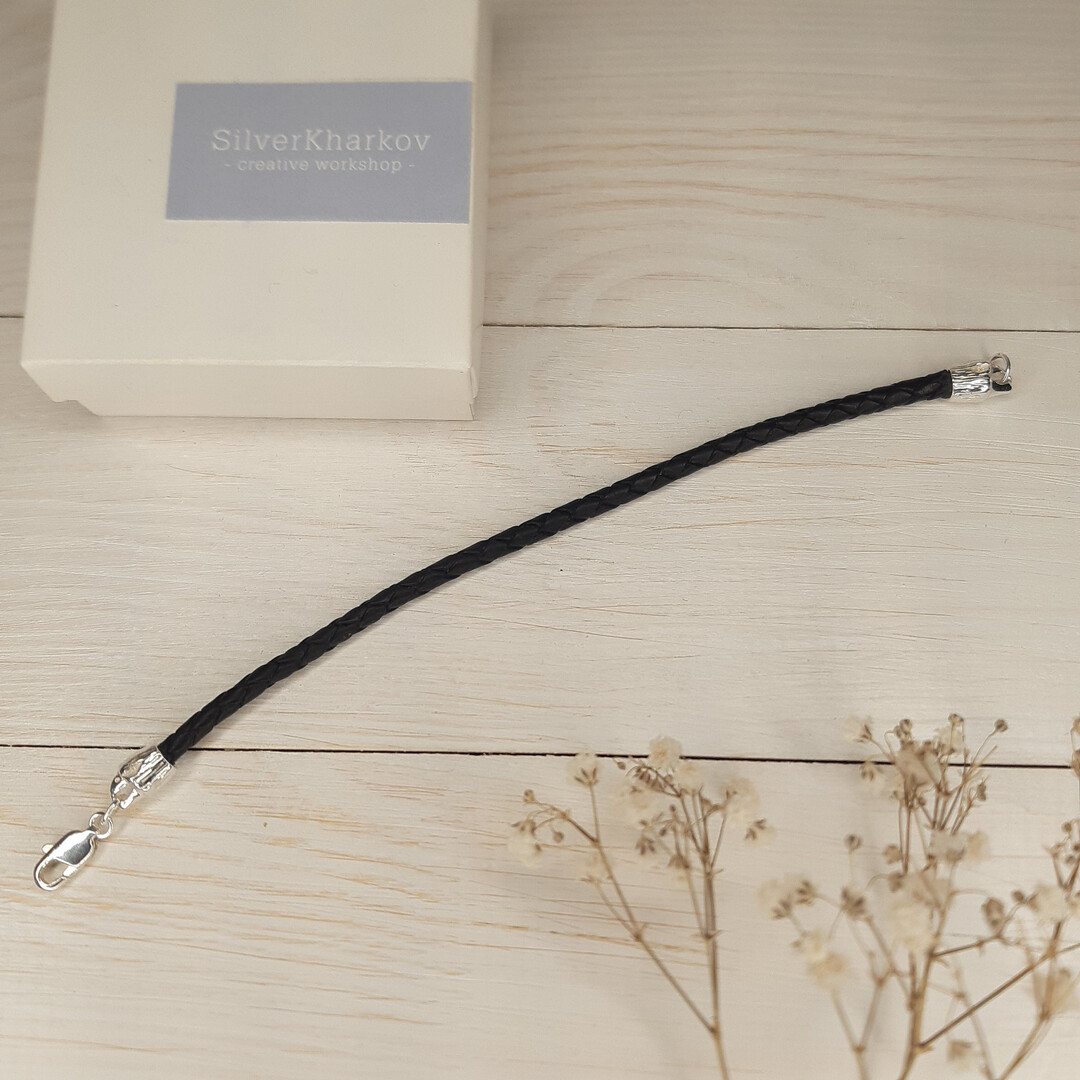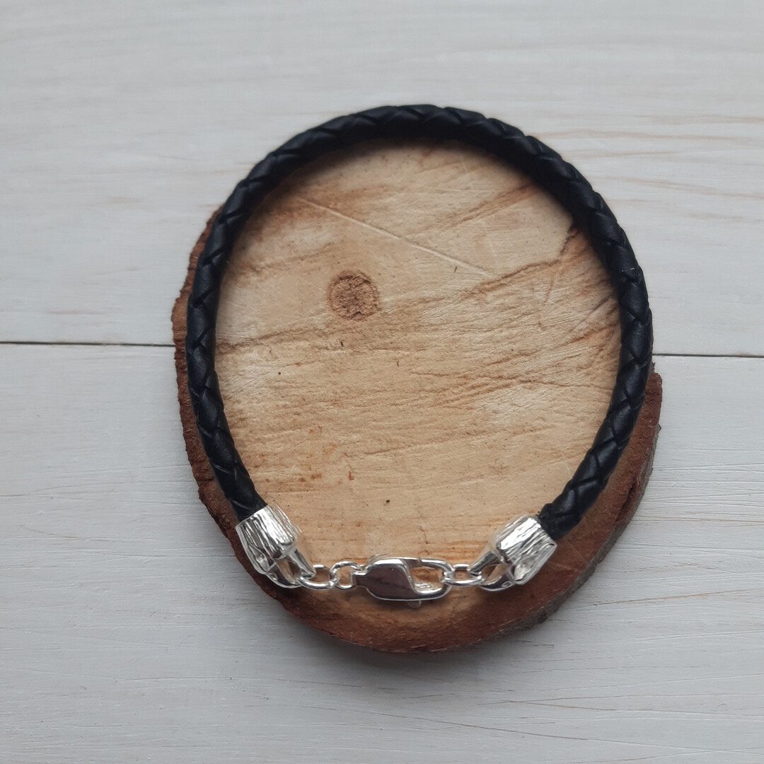 Bracelet Homme, Men Leather Bracelet, 4mm Black Braided Leather Bracelet, Bracelet Gifts Him