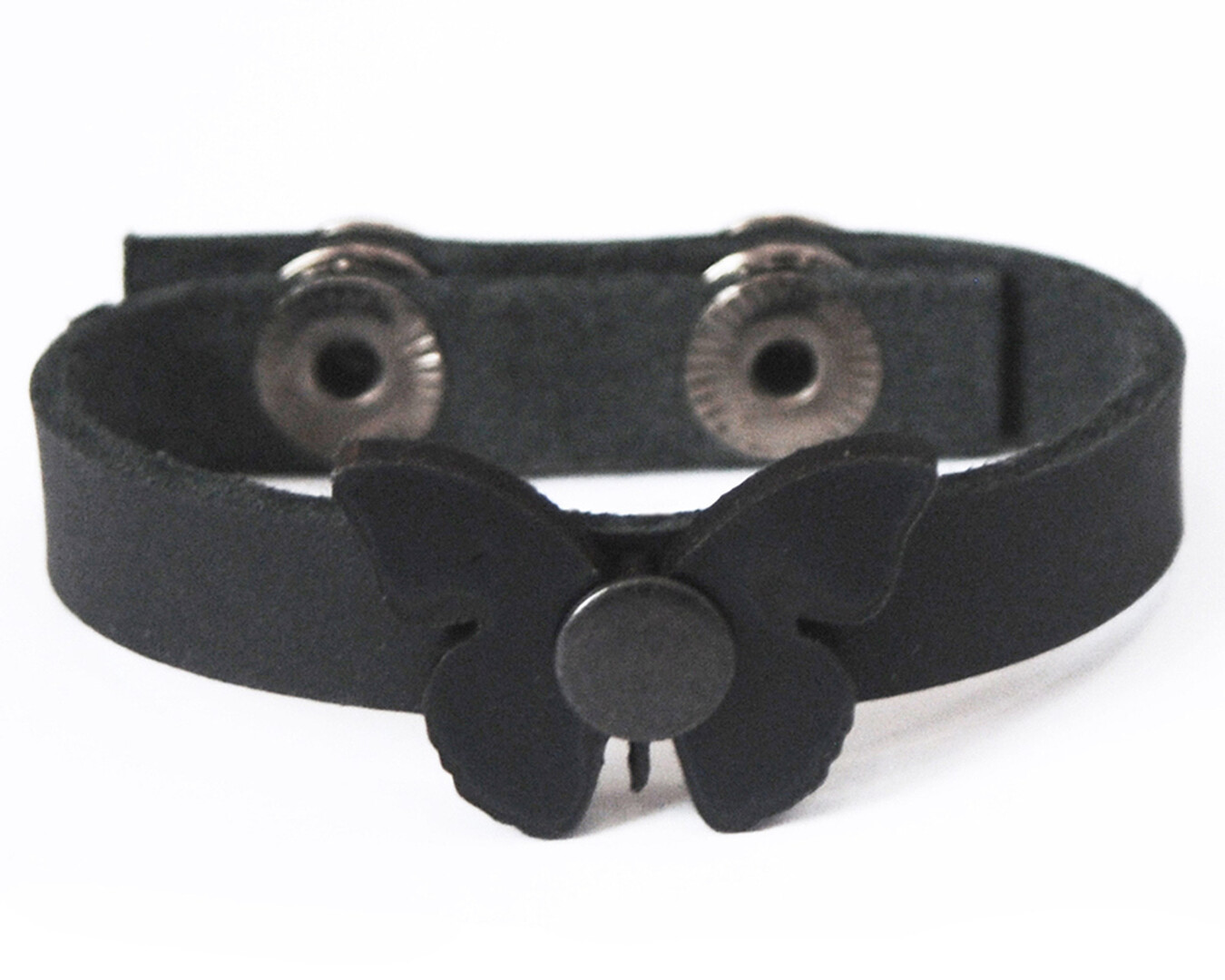 Butterfly leather bracelet thin minimalist wristband jewelry for goth women memorial loss gift for friend