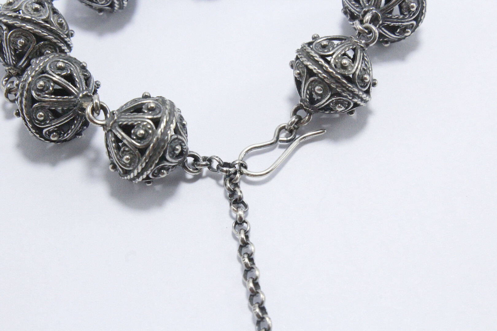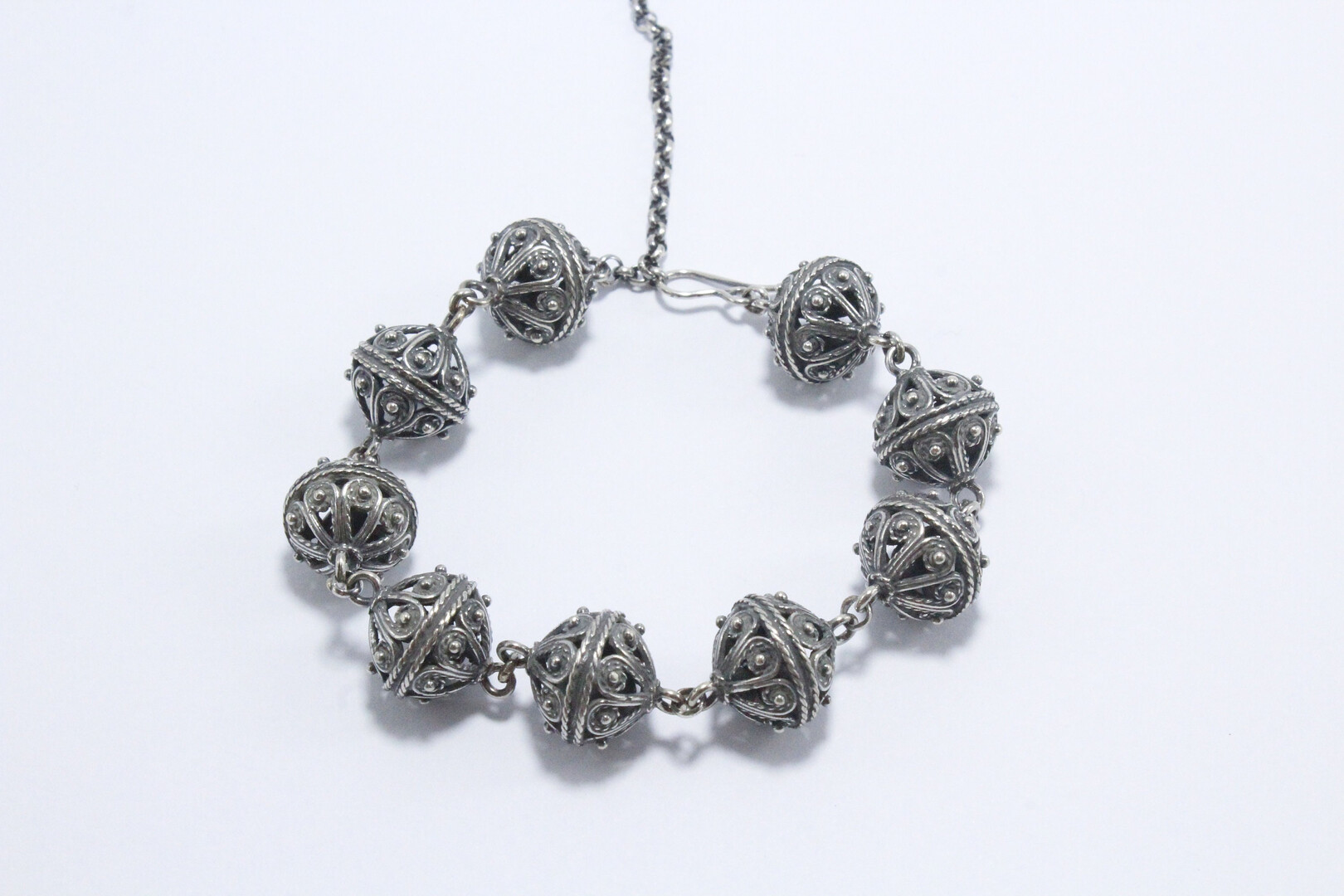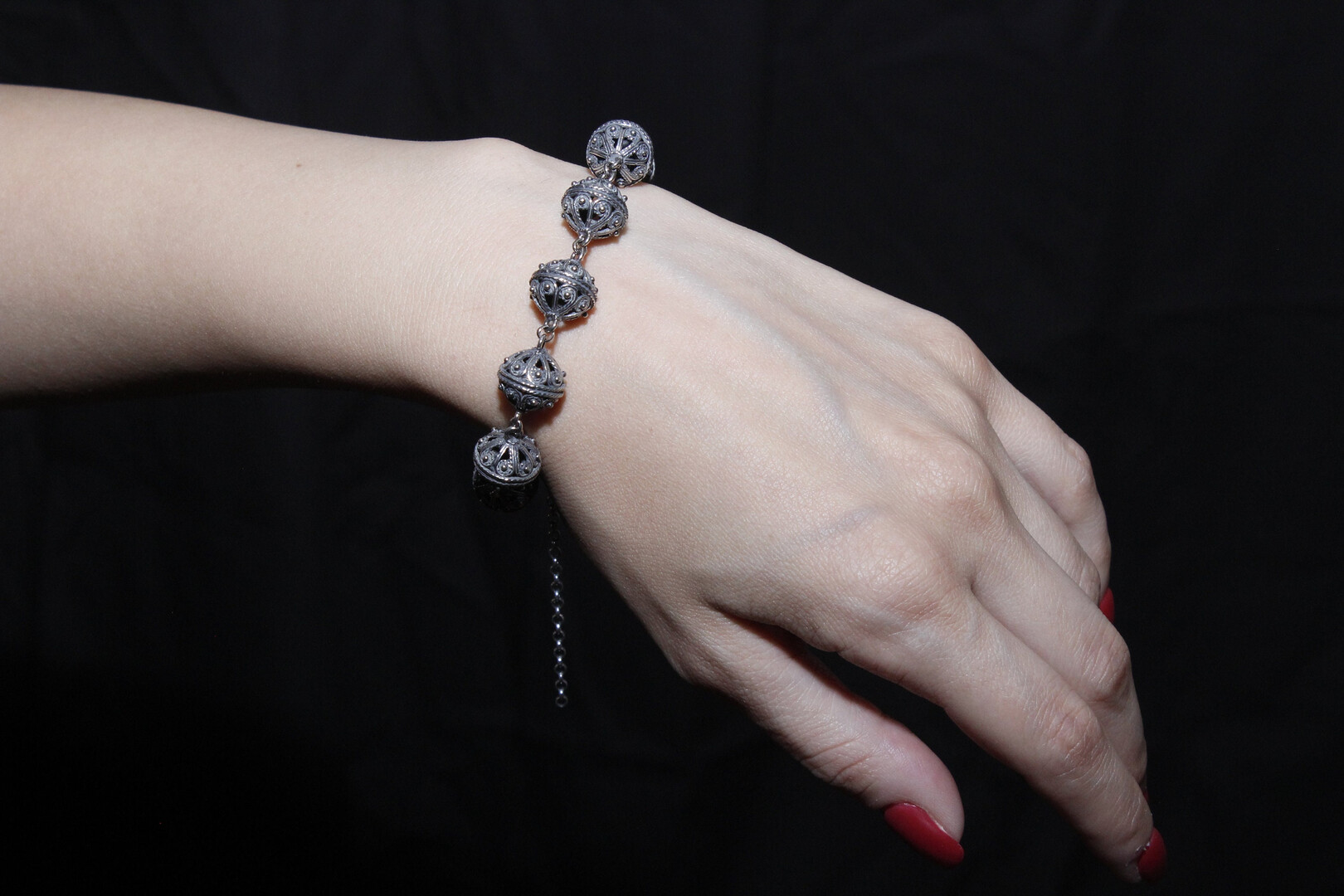 Filigree Beaded Sterling Silver Shamballa Adjustable Bracelet, Spheres Vide Victorian Boho Bangle Chain Girlfriend Gift Armenian Jewelry