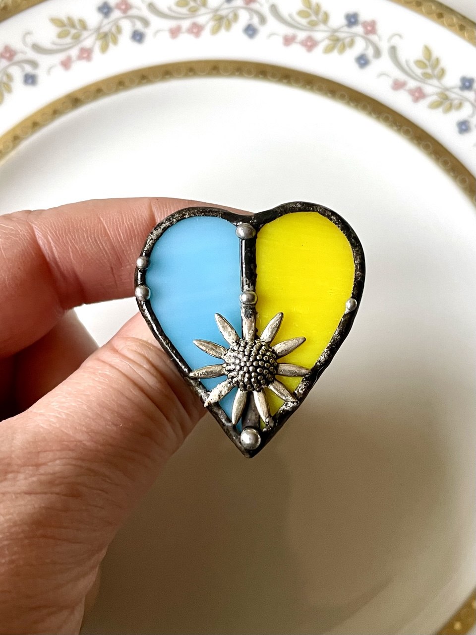 Blue and yellow heart and sunflower brooch gift for mom, sister, girlfriend Blue and yellow colors of the flag of Ukraine. The sunflower is also a symbol of Ukraine.