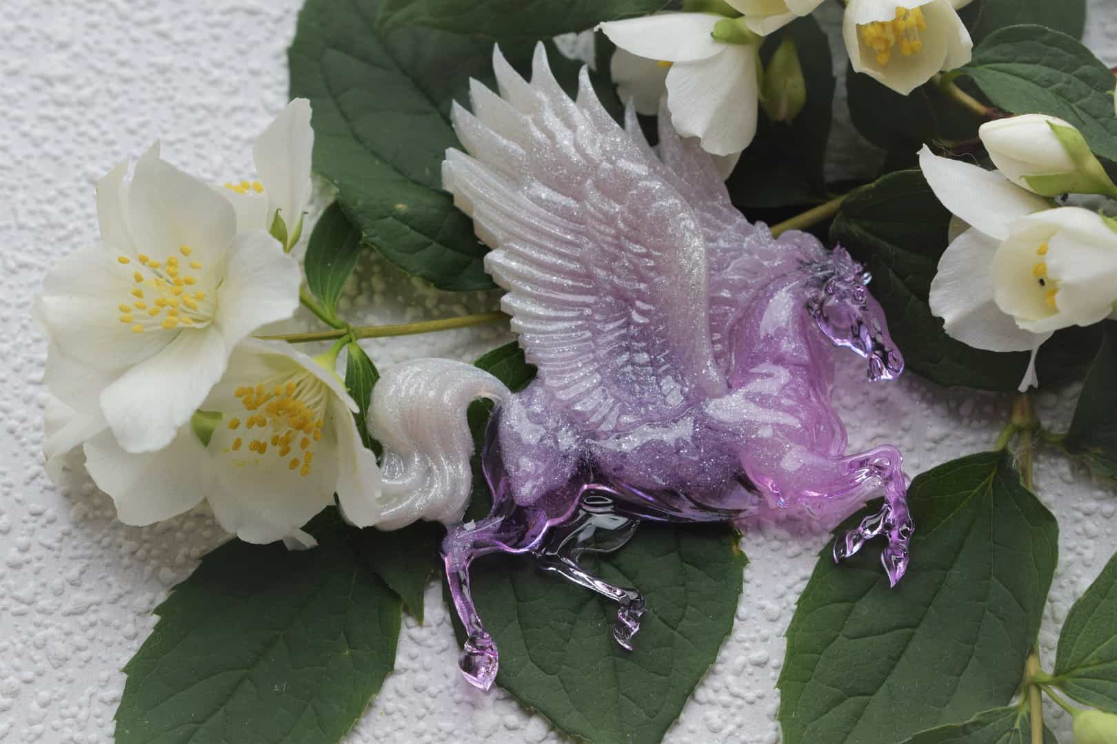 Resin Brooch "Purple Pegasu" Brooch for him.Resin Pegasu.Animal Brooch.Brooch for mom.Air spirit horse.Lilac brooch.Purple&white.Resin horse