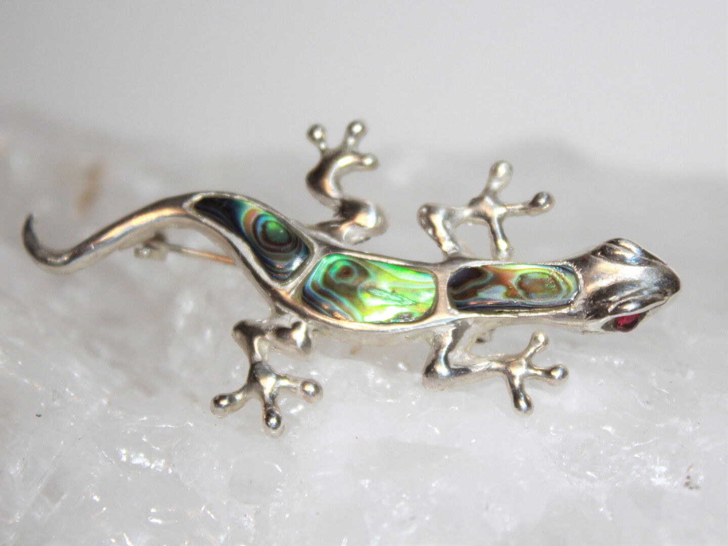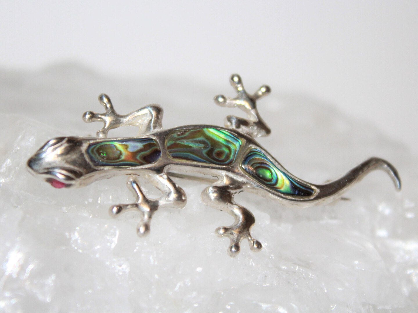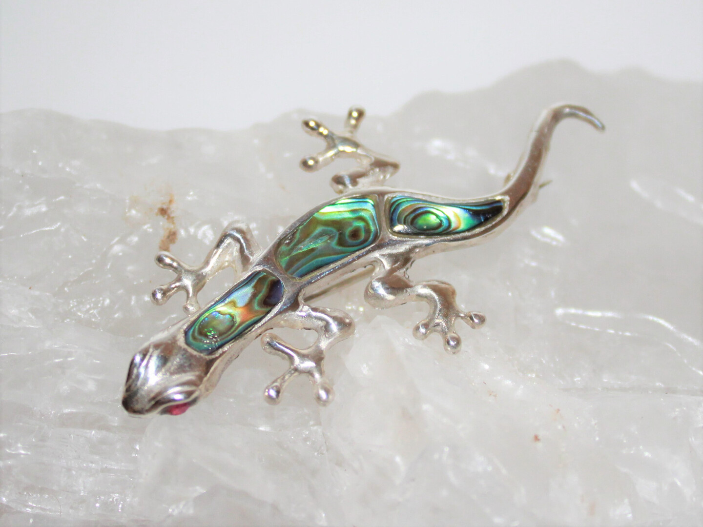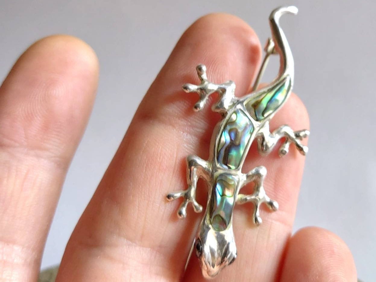 Sterling Silver Abalone Lizard Salamander Brooch Pin Jewelry, Vintage Style Mothers Day Gift, Animal Jewelry, Armenian Jewelry