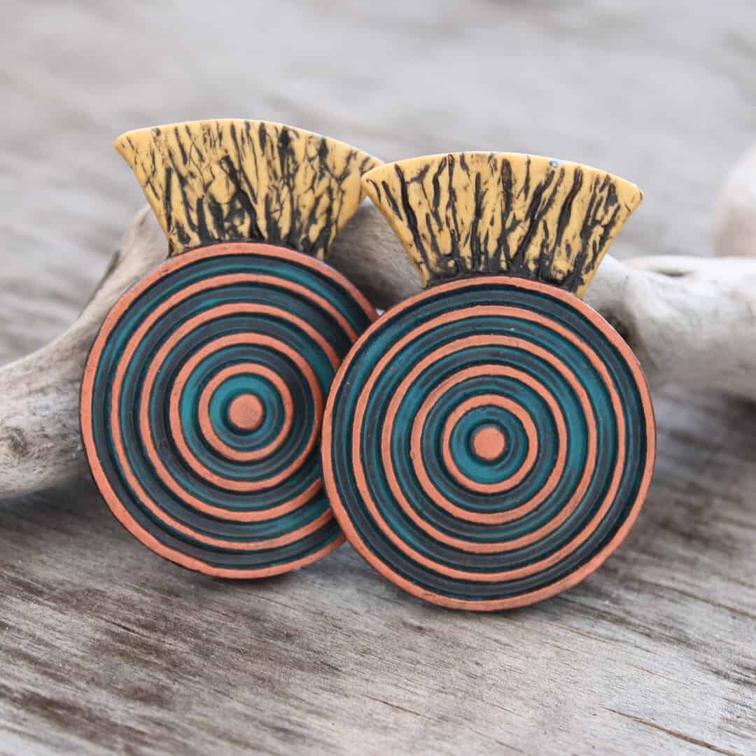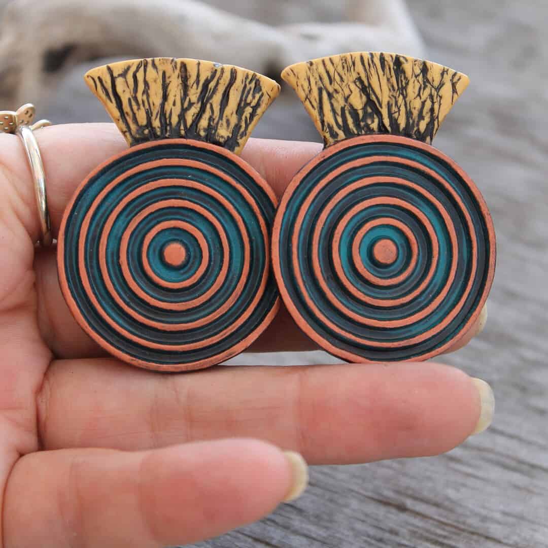 Beautiful boho earrings made of polymer clay. They consist of colorful pieces in different techniques. This is my original design.