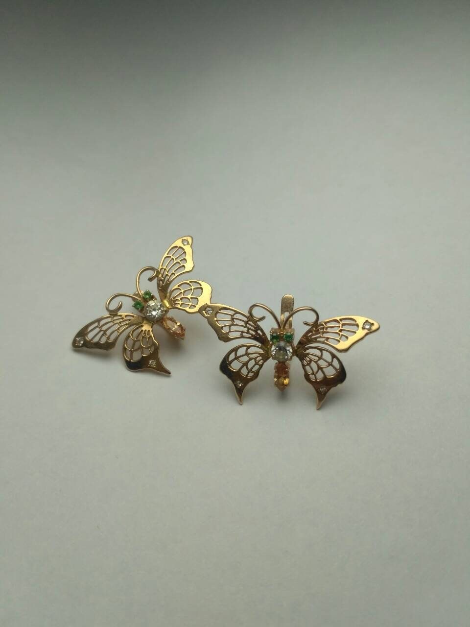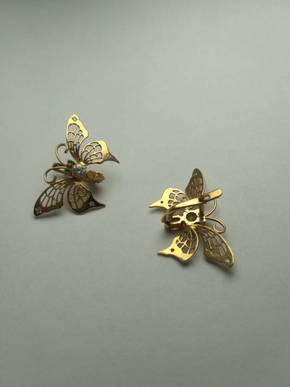 butterfly earrings gold 14 k. butterfly earrings gold . delicate tiny earrings . jewelry butterfly . pink earrings . animal earrings . wing
