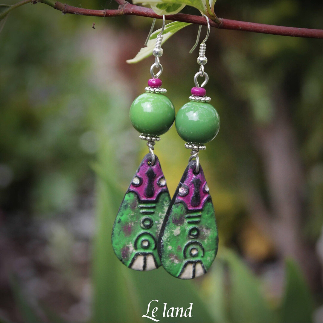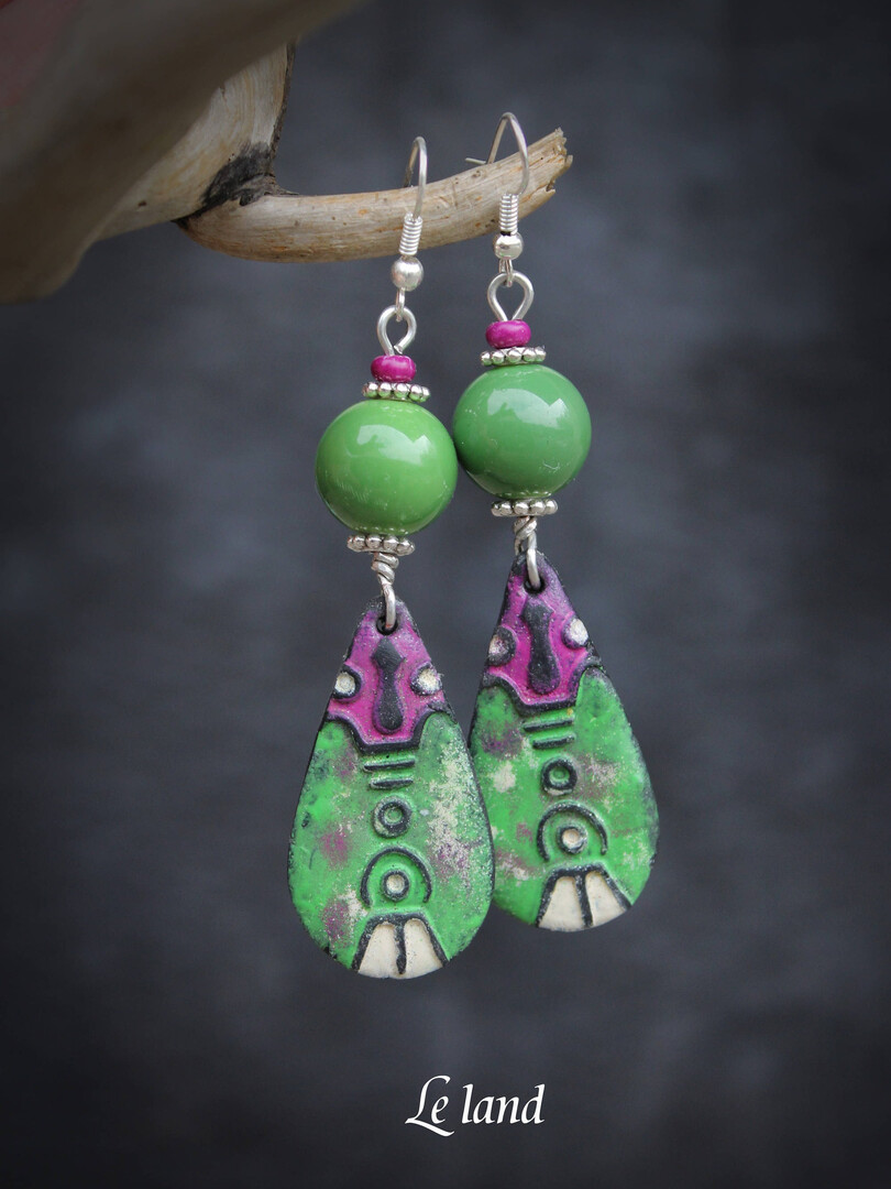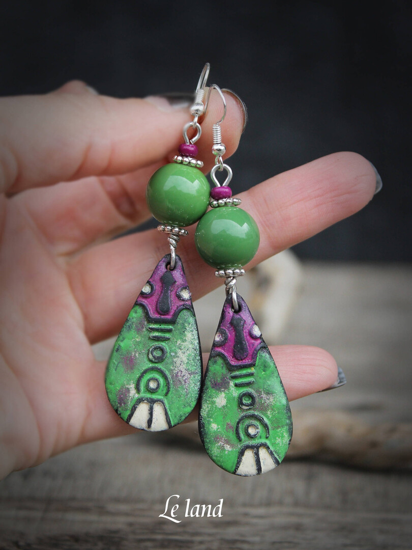 All handmade by me. Your earrings will be one-of-a-kind with the author's stamp artist.