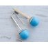Turquoise Bead Stone Sterling Silver Long Dangle Drop Earrings, Dainty Elegant Minimalist Blue Stone Beach Earrings, Armenian Jewelry