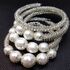 Large hoop earrings with Pearl bracelet. White pearl jewelry set. Seed bead pearl big round earrings and Bracelet for women