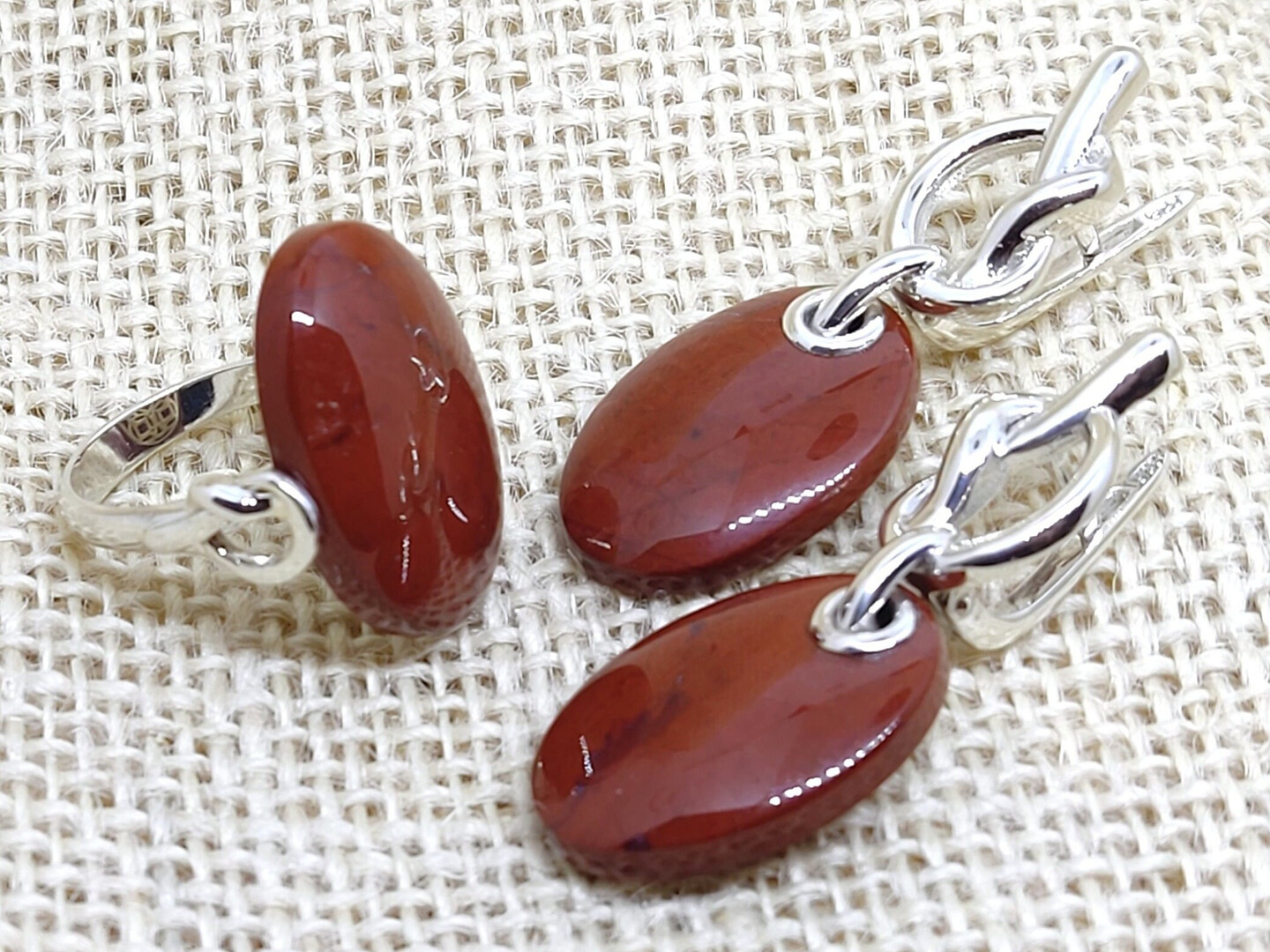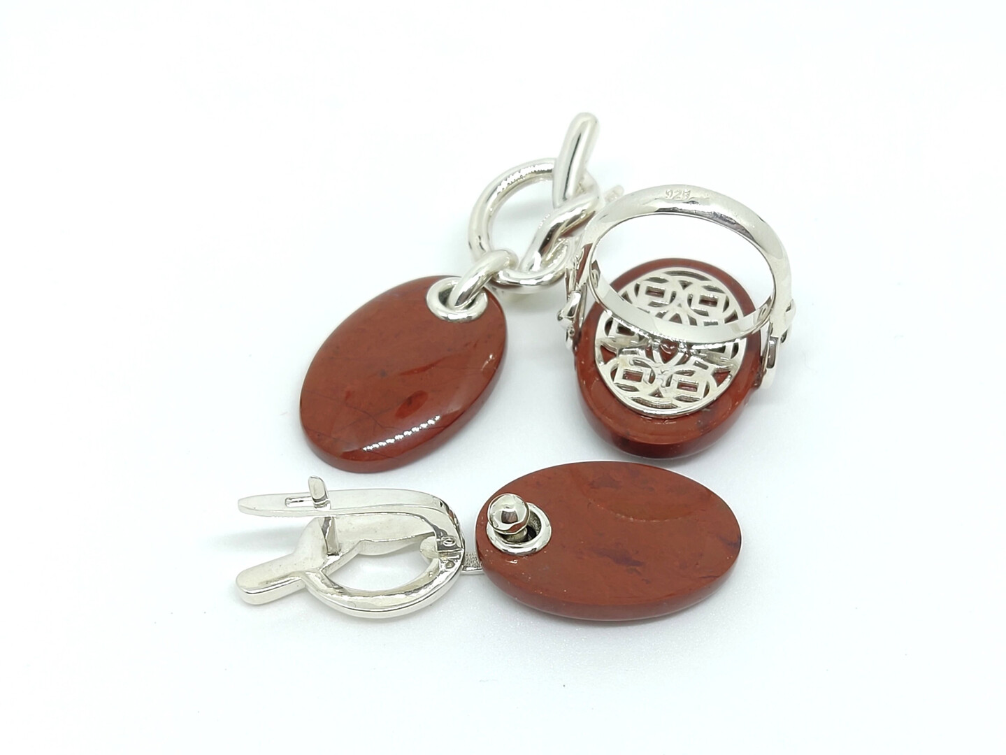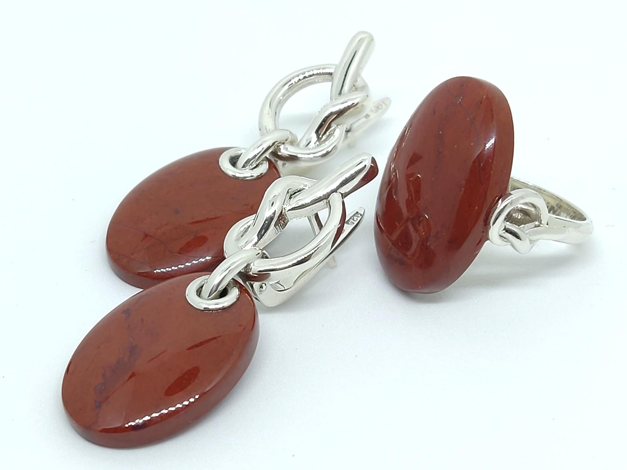 Jasper Sterling Silver Knot Oval Ring Earrings Jewelry Set, Dangle Art Deco Aesthetic Armenian Jewelry