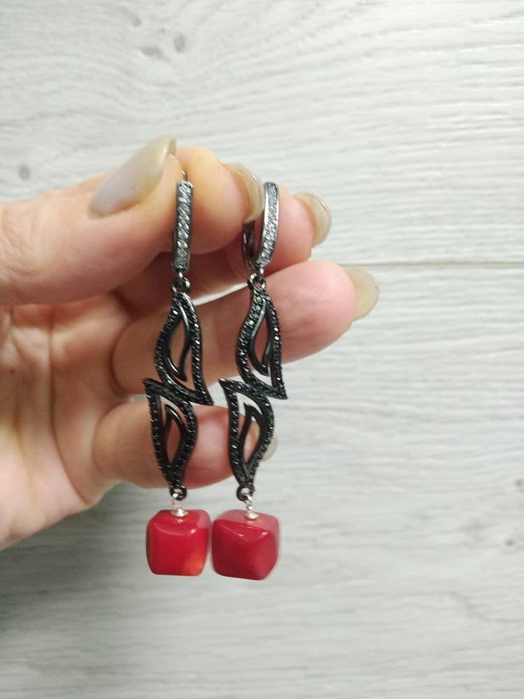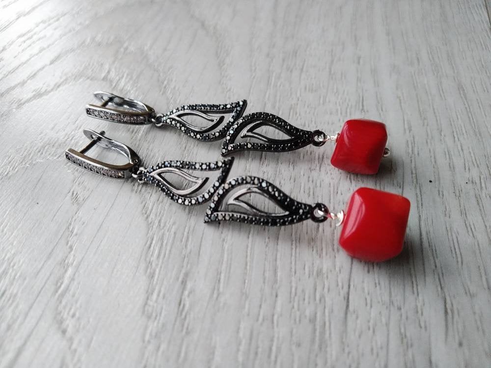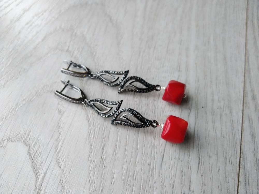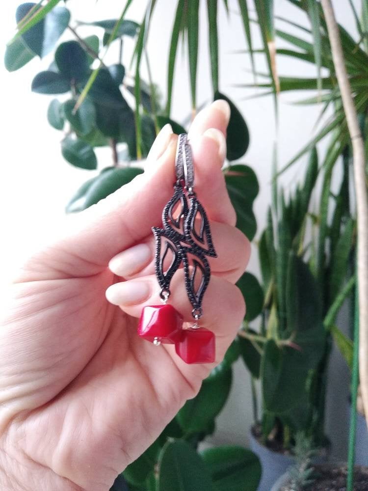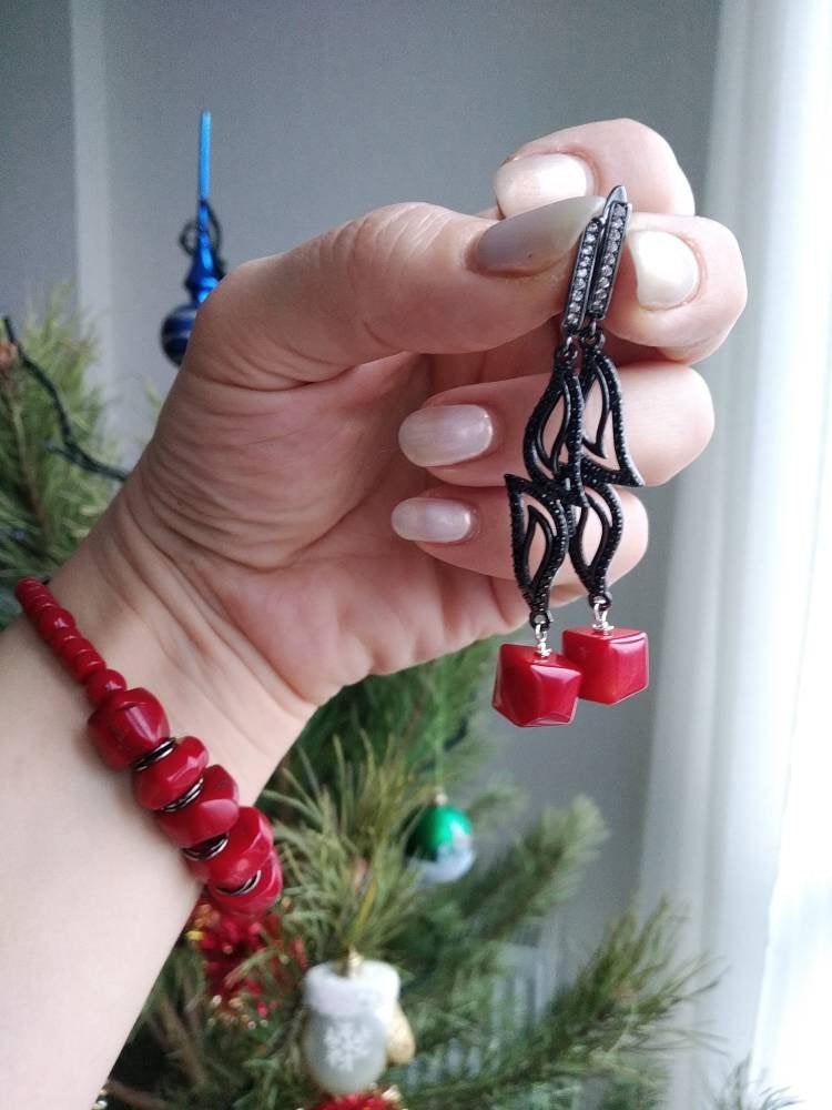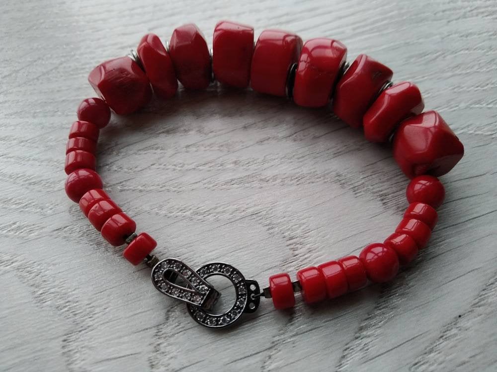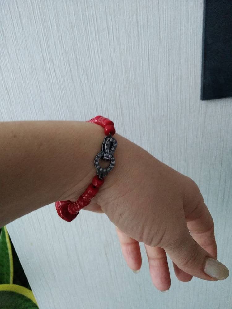 Natural red coral bead bracelet earrings red hot coral beads bracelet Red stone bracelet Red bead br