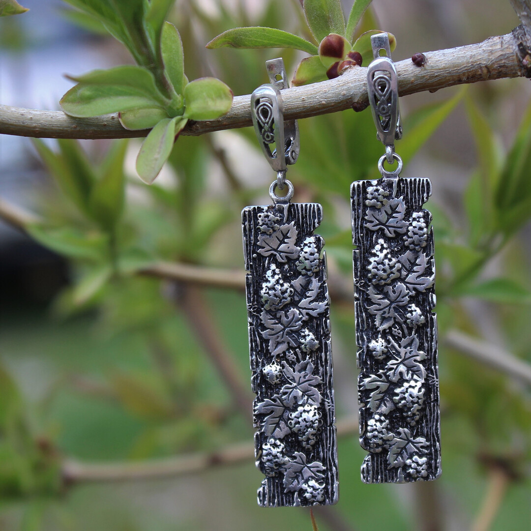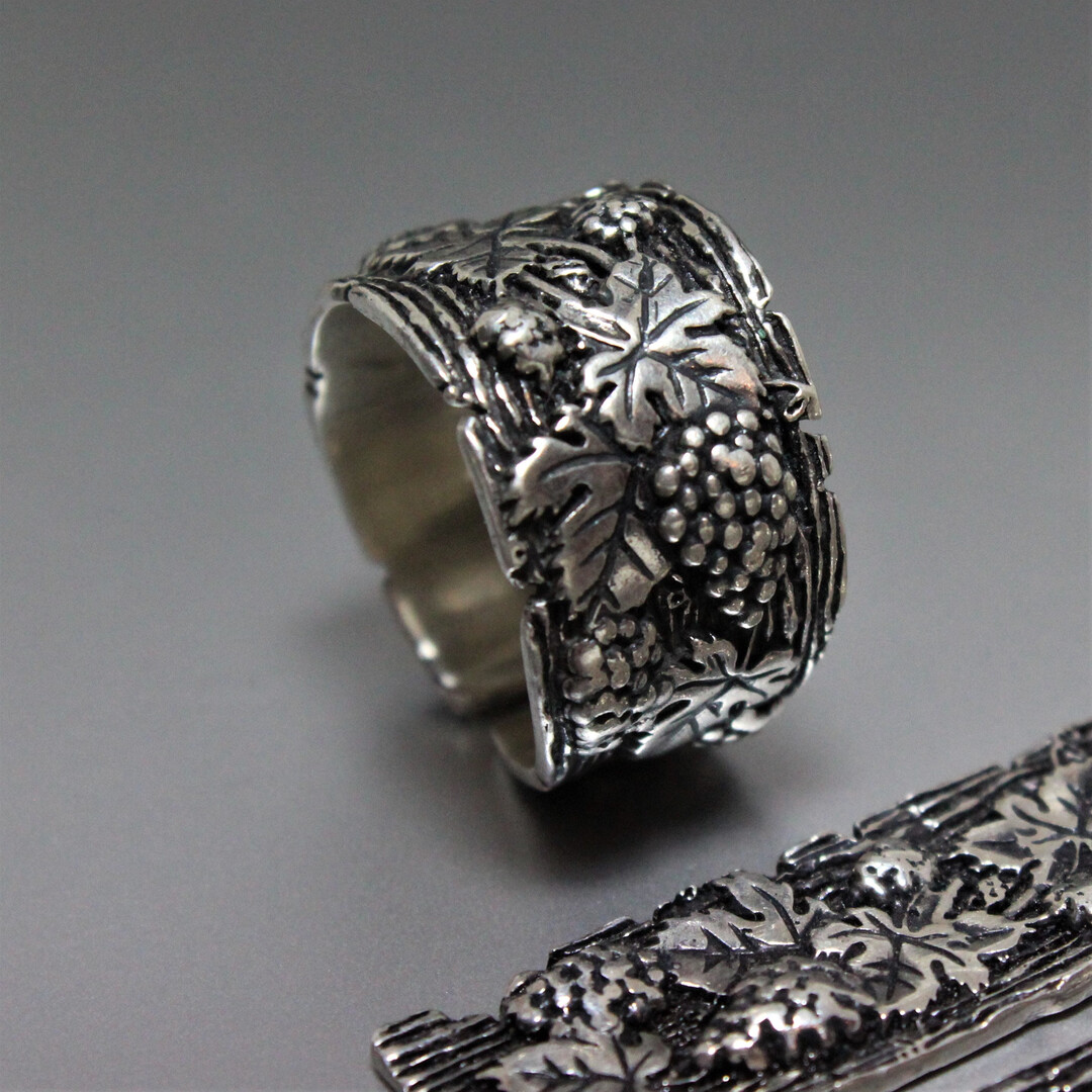Persephone Stacking Ring Earrings 925 Sterling Silver - Vine Jewelry, Persephone Jewelry, Vine Silver Ring And Earrings, Armenian Silver