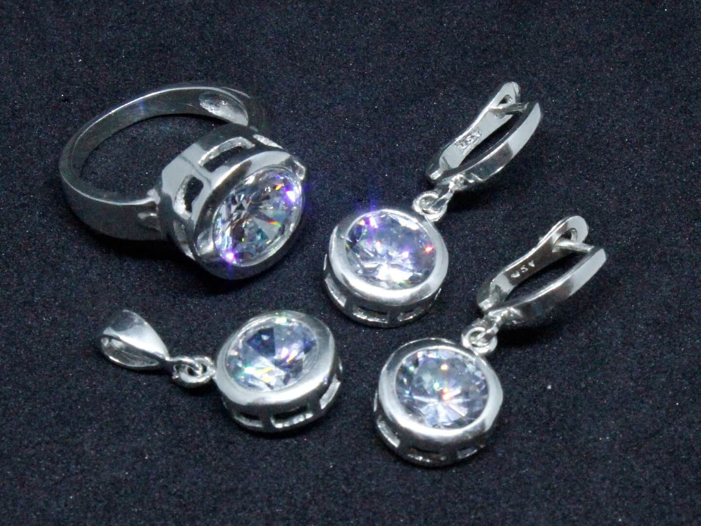 Sterling Silver Clear Zircon Jewelry Set - Gift For Her, Crystal Bridal Jewelry Set, Ring Earrings And Necklace Silver Set