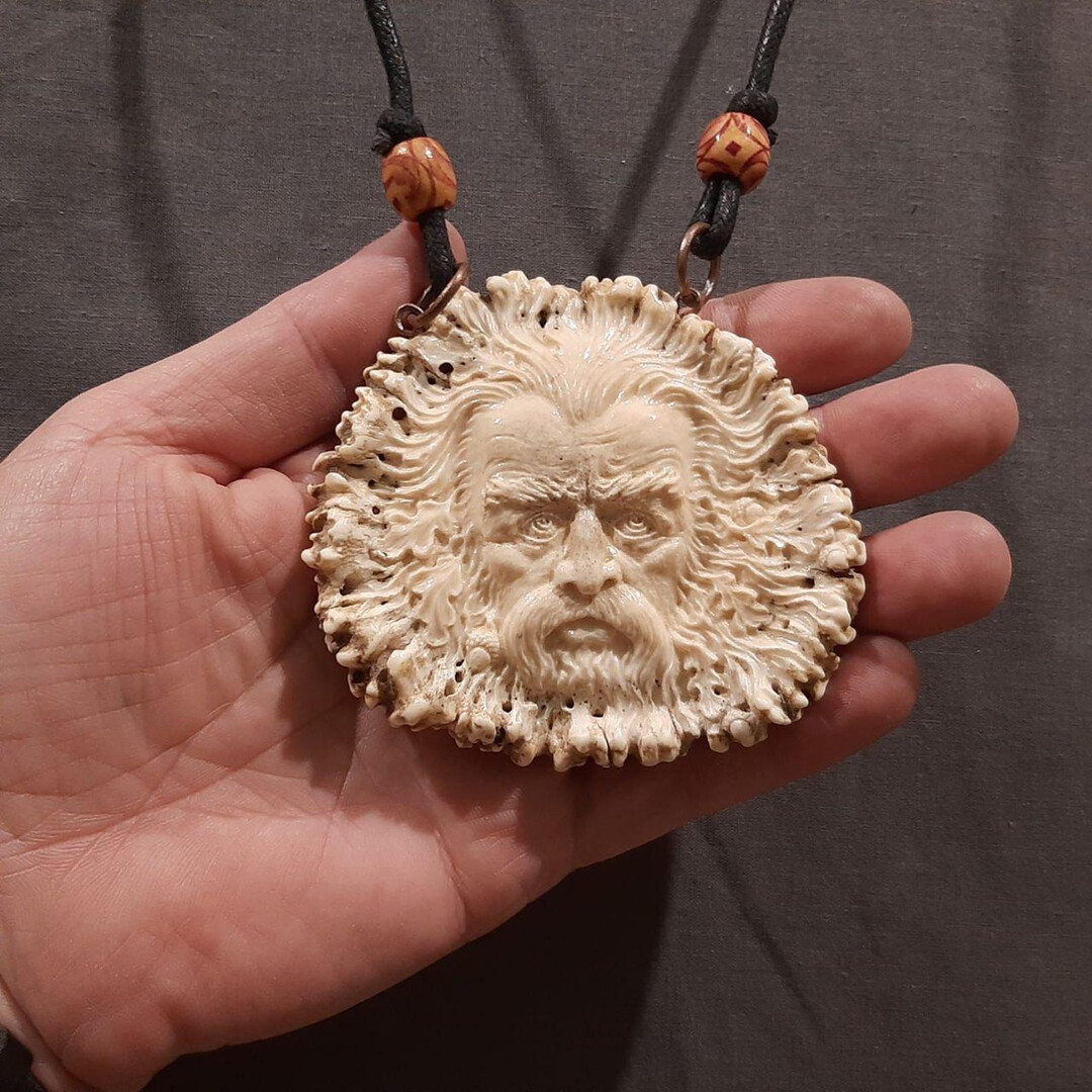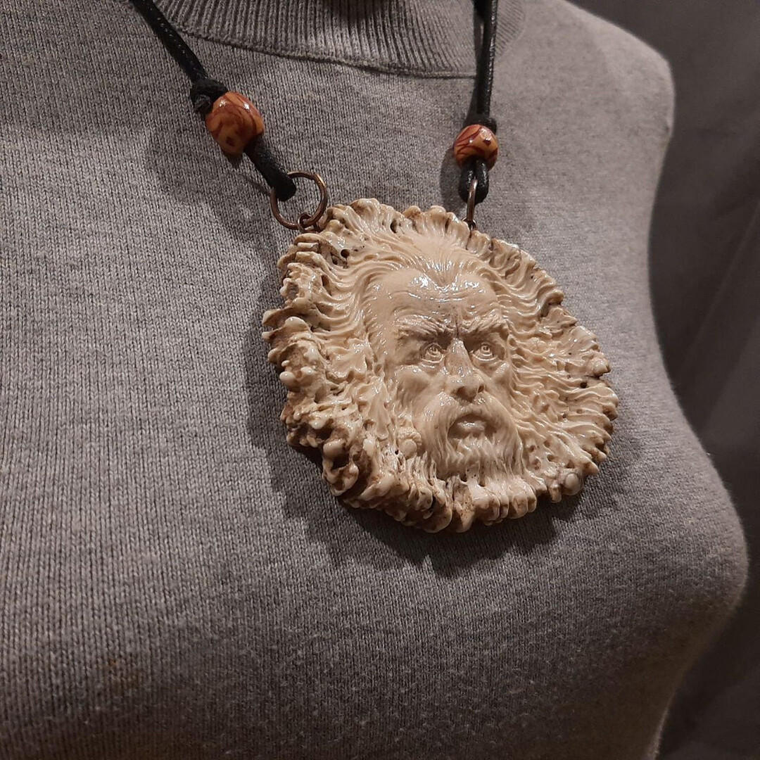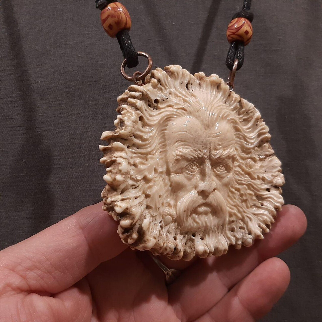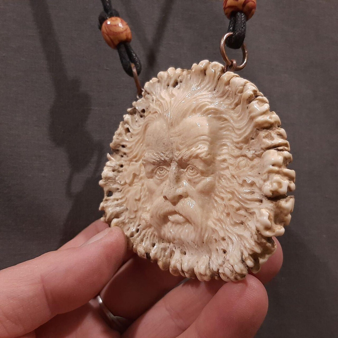 Carved deer antler necklace Green Man, Horn bone jewelry,Celtic Shaman Human Druid, Spirit Of The Forest, The Yurich