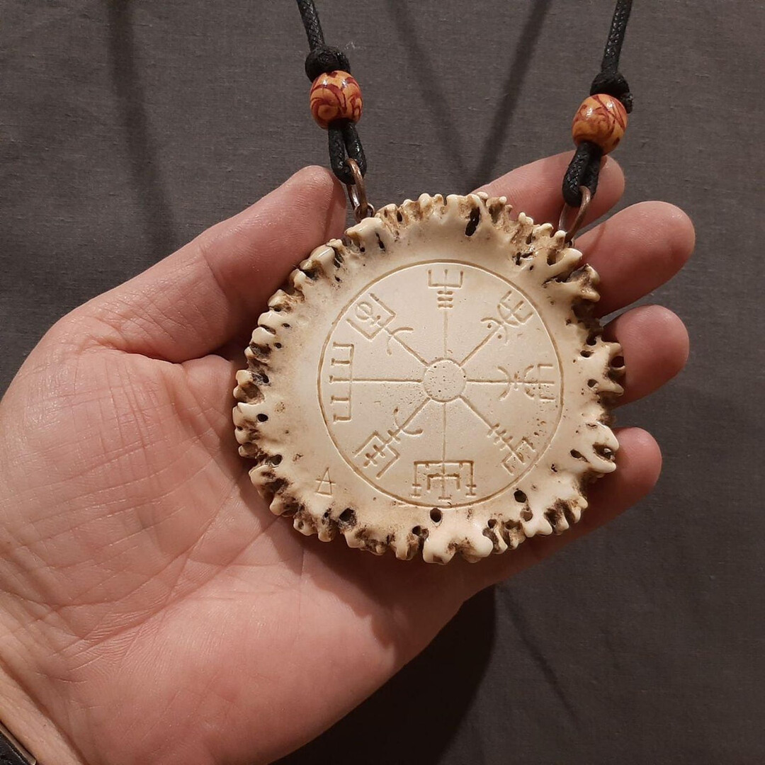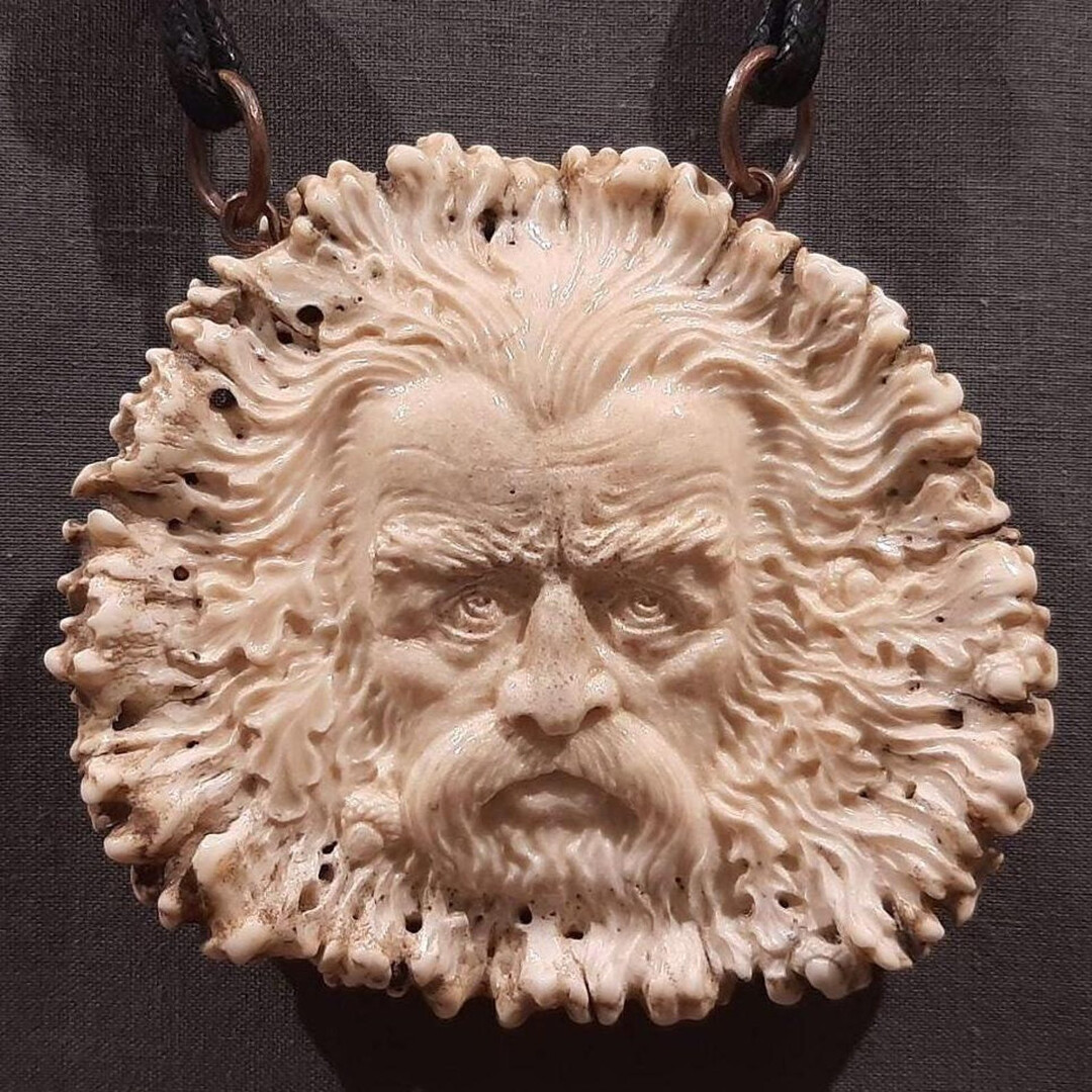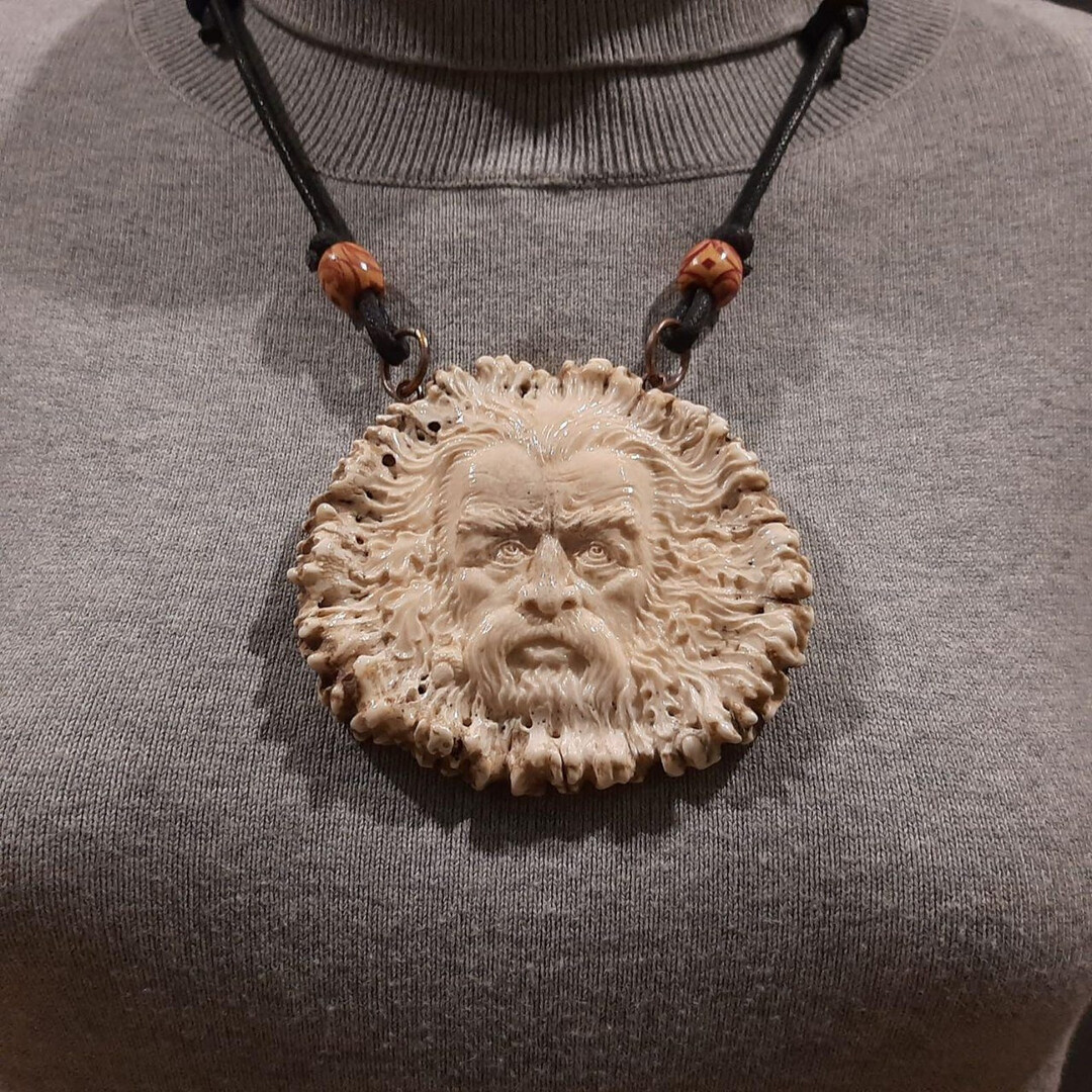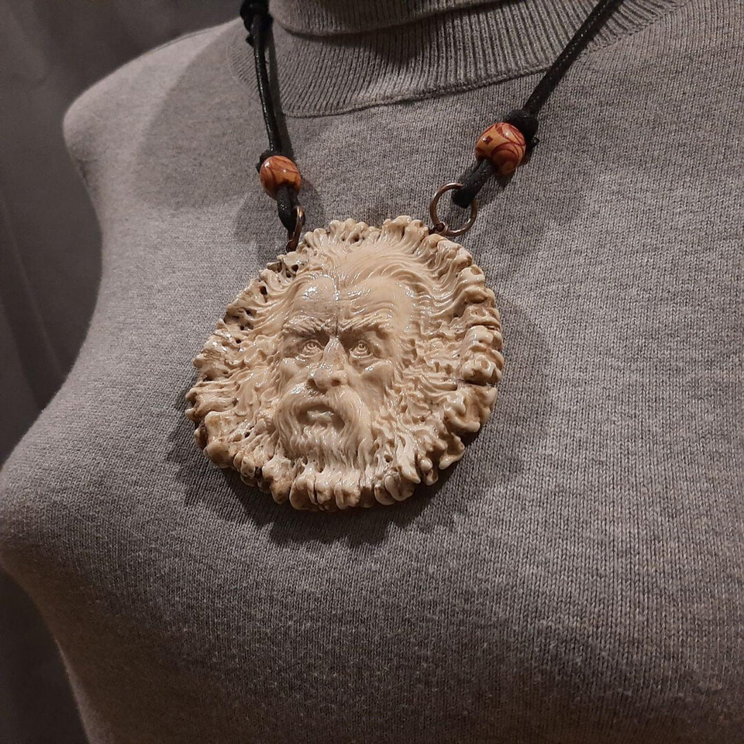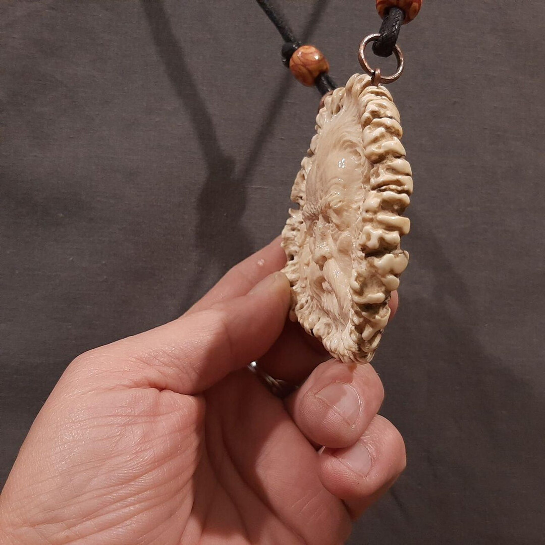 Carved deer antler necklace Green Man, Horn bone jewelry,Celtic Shaman Human Druid, Spirit Of The Forest, The Yurich
