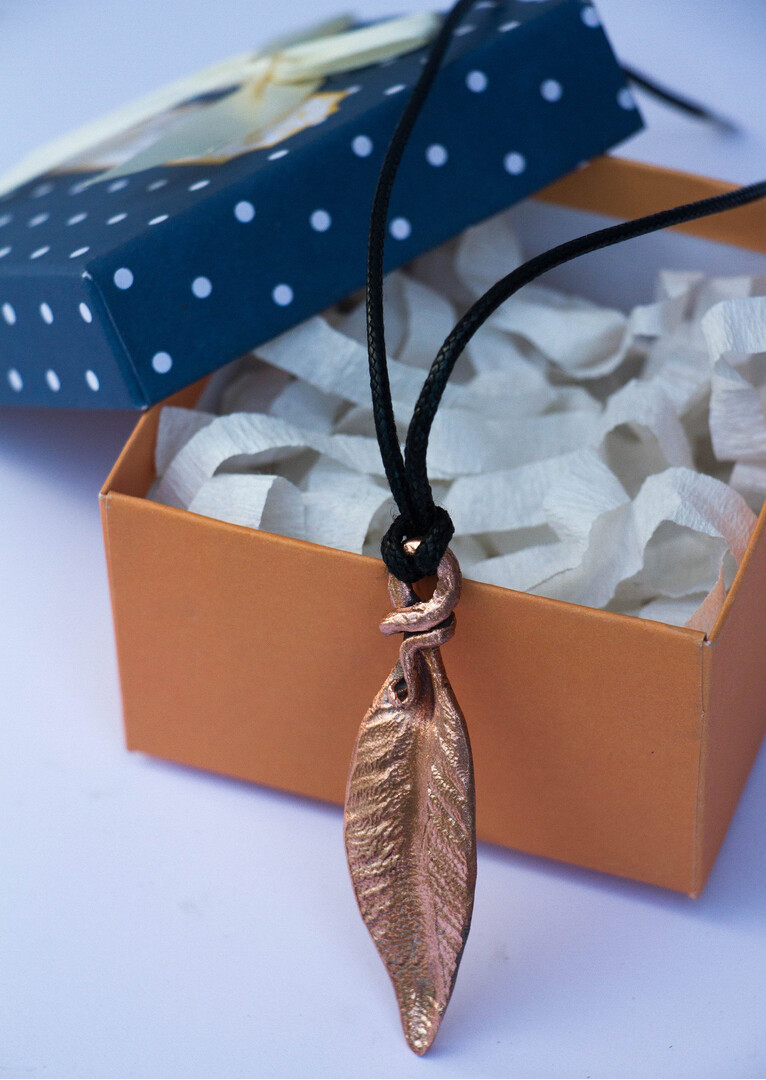 Изумительное, изысканное колье в виде чудесного листочка очень подходит для оригинального подарка девушке.