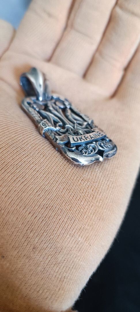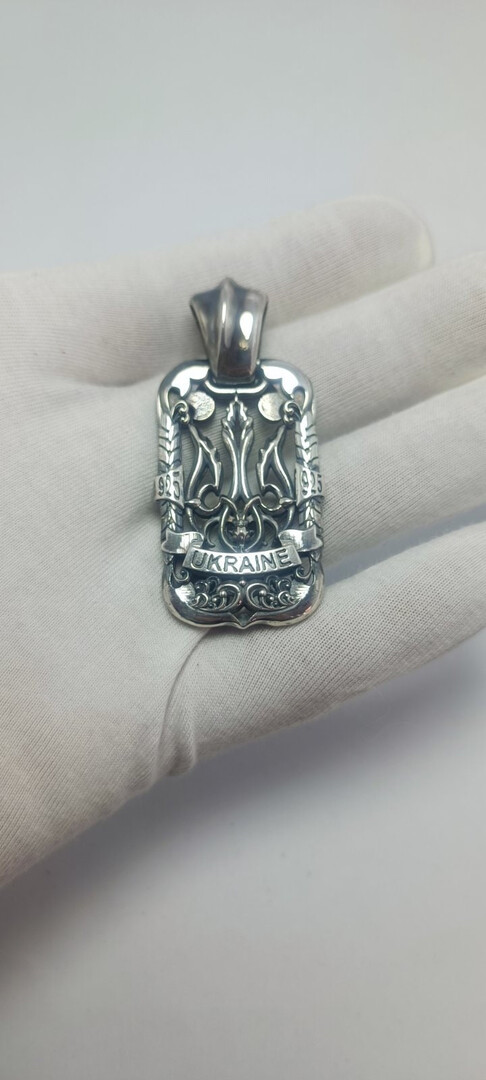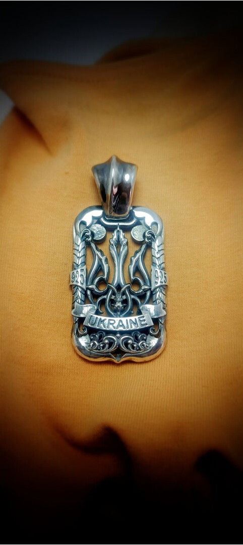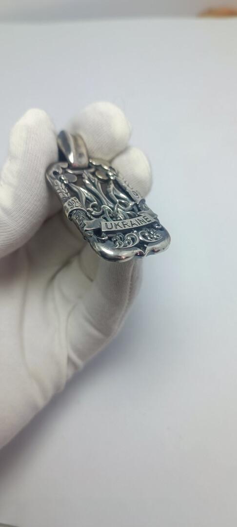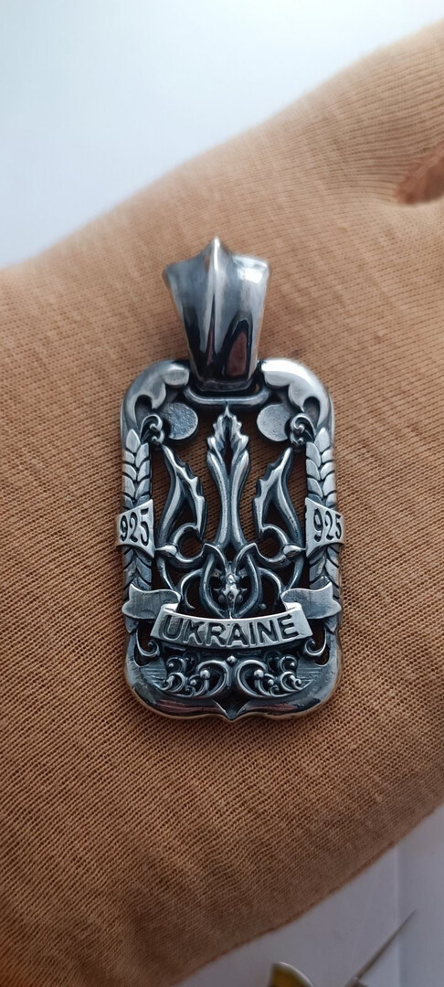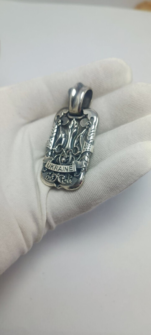 Charm pendant Ukraine trident double-sided. Product weight 28 grams of silver
