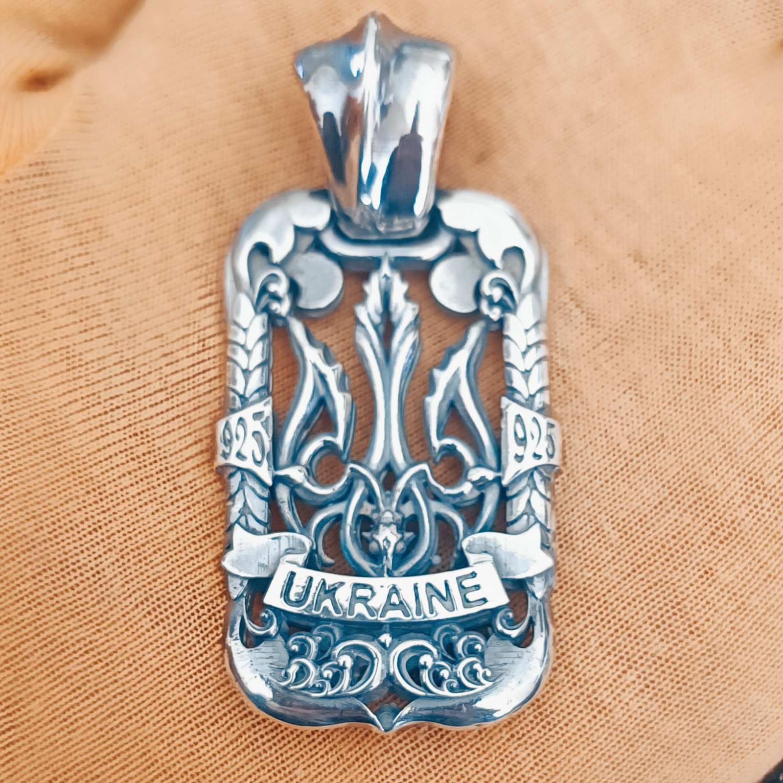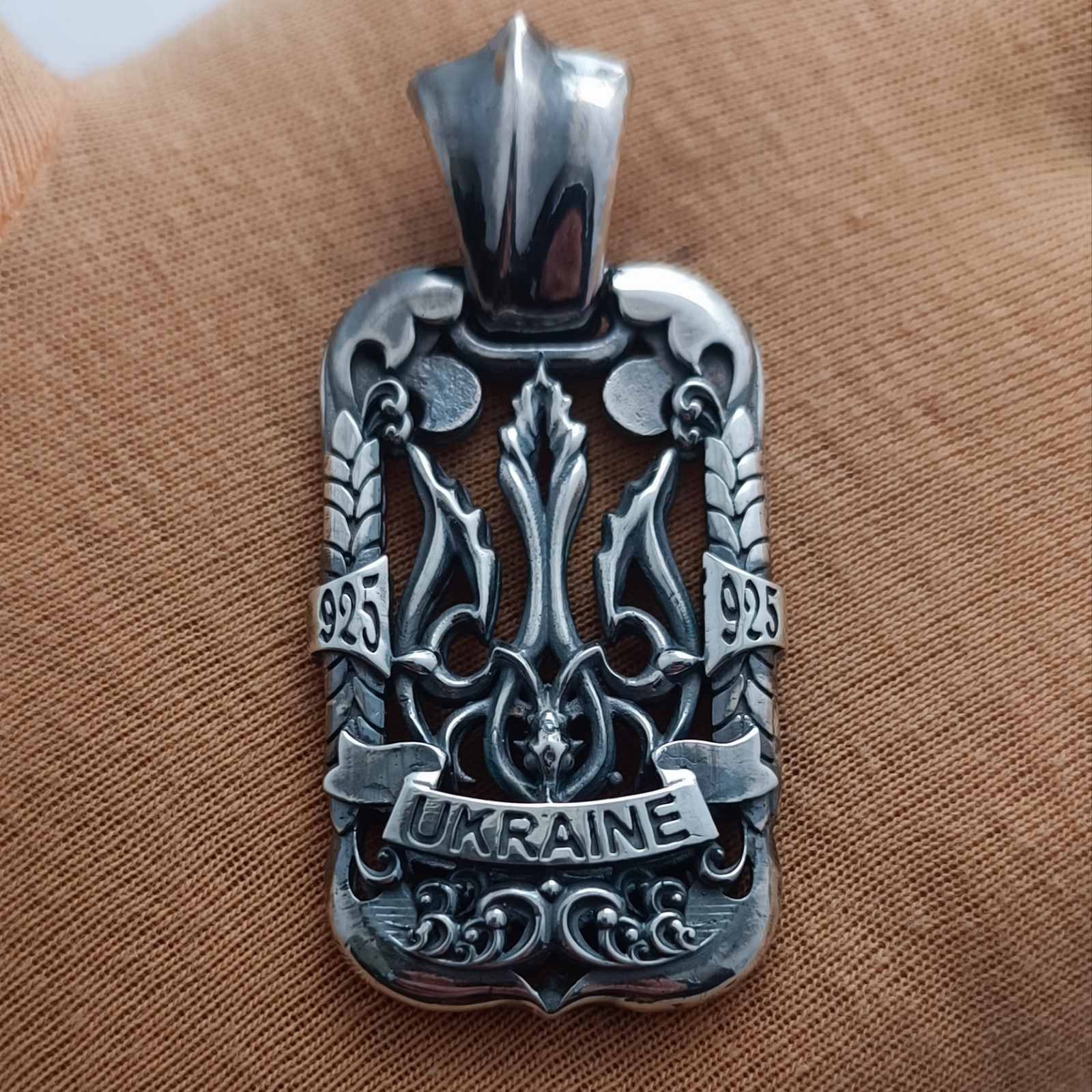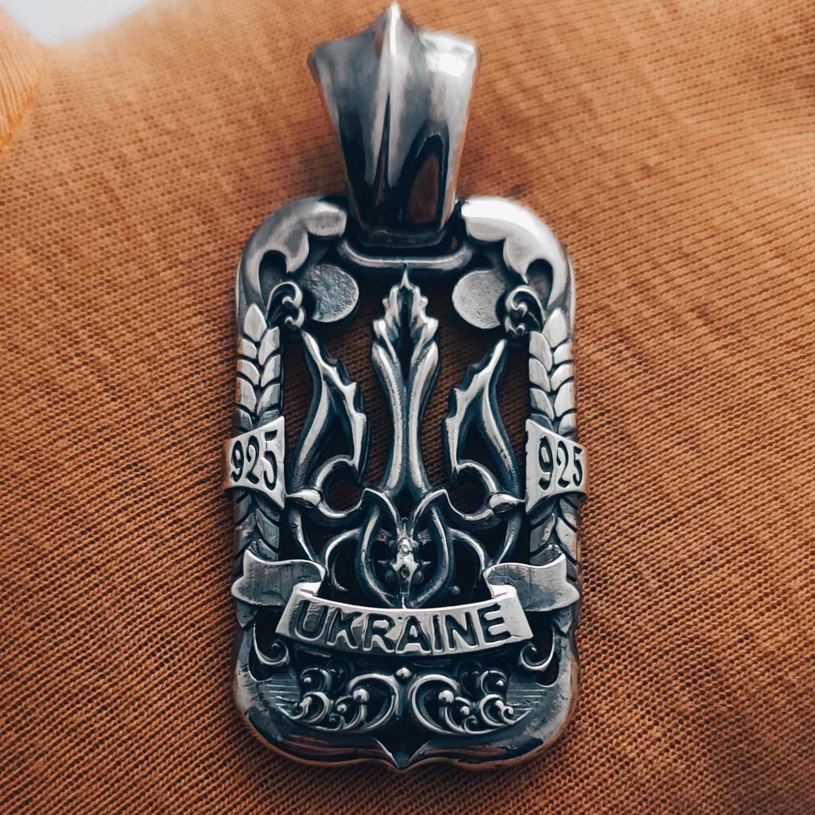 Charm pendant Ukraine trident double-sided. Product weight 28 grams of silver