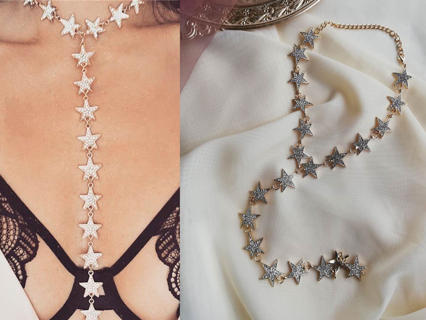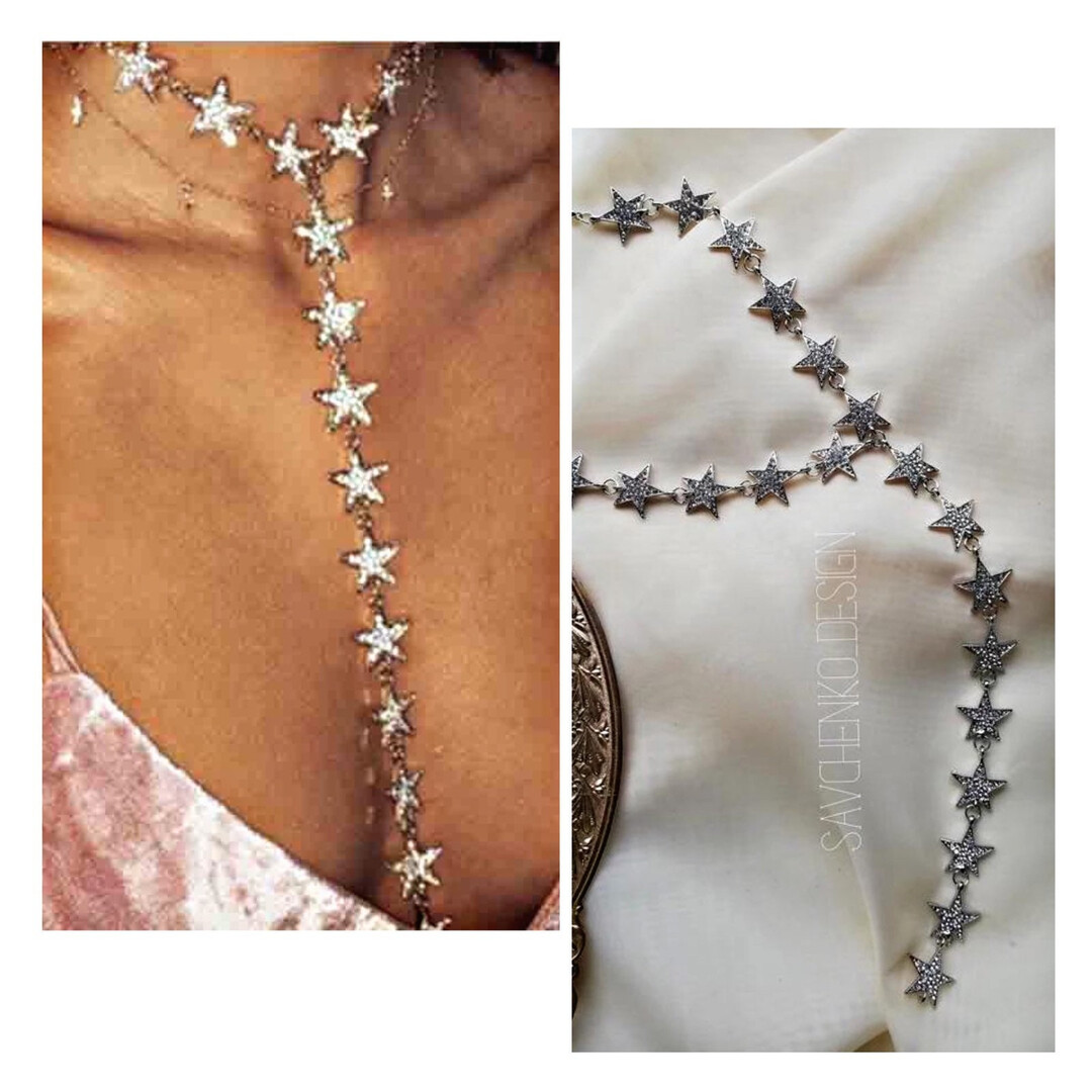 gold star drop necklace long star necklace minimalist multi star pendant sterling gold choker necklace gold filled choker celestial wedding