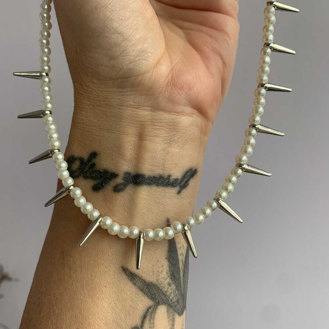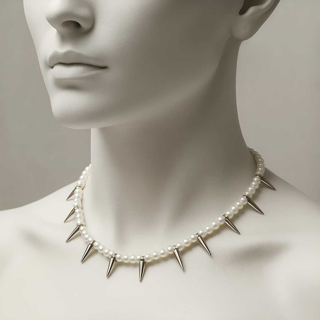 Ideal for both casual and formal gothic or punk-inspired looks, this versatile jewelry piece complements a wide range of outfits—whether you're dressing for a concert, a night out, or adding an unconventional touch to everyday wear. Its secure clasp ensures stability, while the combination of pearls and spikes creates a captivating contrast that embodies rebellious elegance and sophistication. Perfect as a gift for alternative fashion enthusiasts, this necklace elevates any wardrobe.
