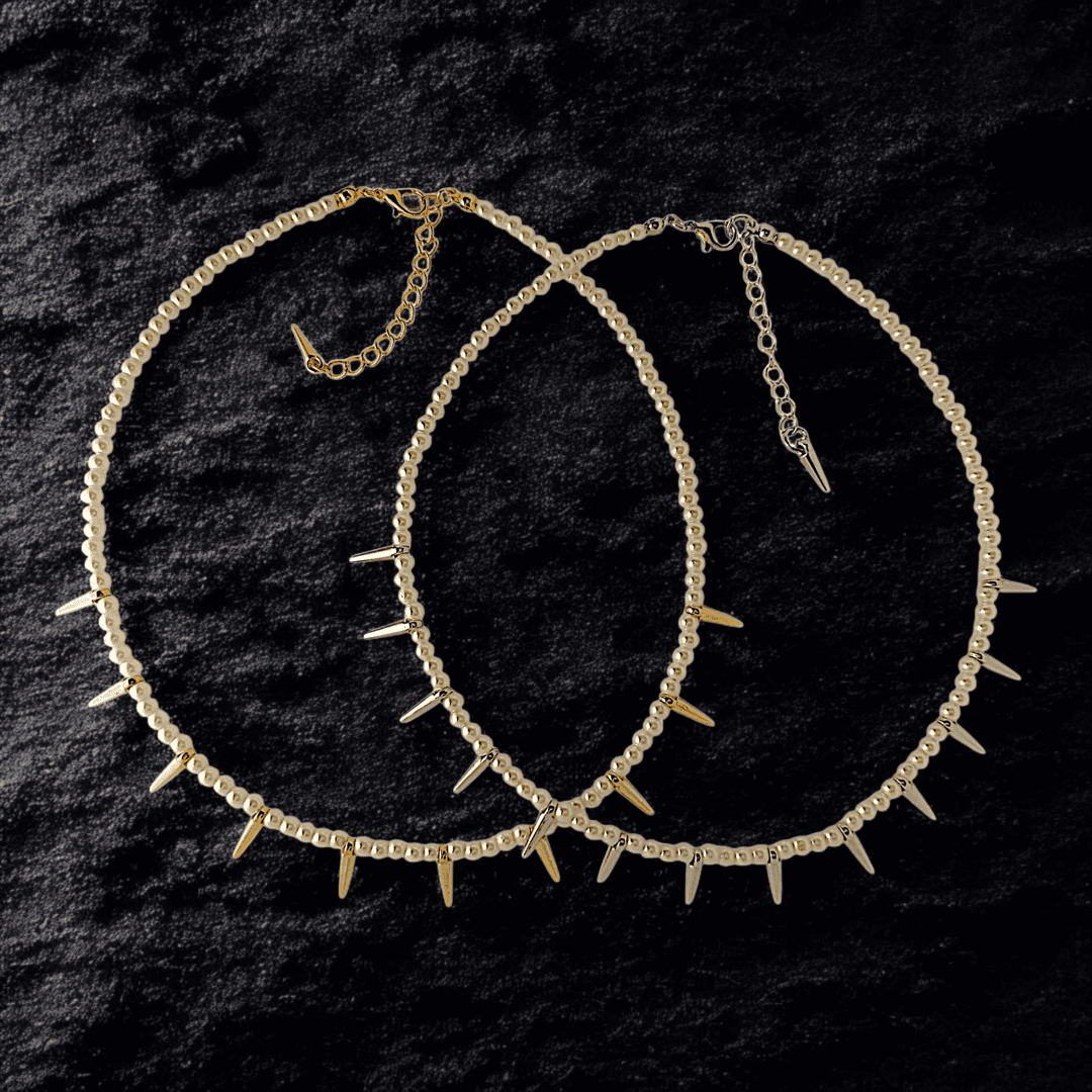 Pearl Choker: Punk Goth Minimalist Spike Necklace with Gold/Silver Spikes