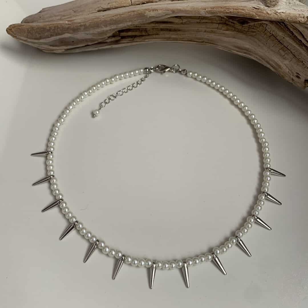 This striking pearl choker combines the elegance of lustrous pearls with an edgy punk aesthetic, featuring bold spike accents available in both gold and silver finishes. Crafted with high-quality materials, each piece is carefully handmade, ensuring a unique and authentic accessory suitable for those who love to express themselves through bold fashion statements. Designed to sit comfortably around the neck while making a powerful style impact.