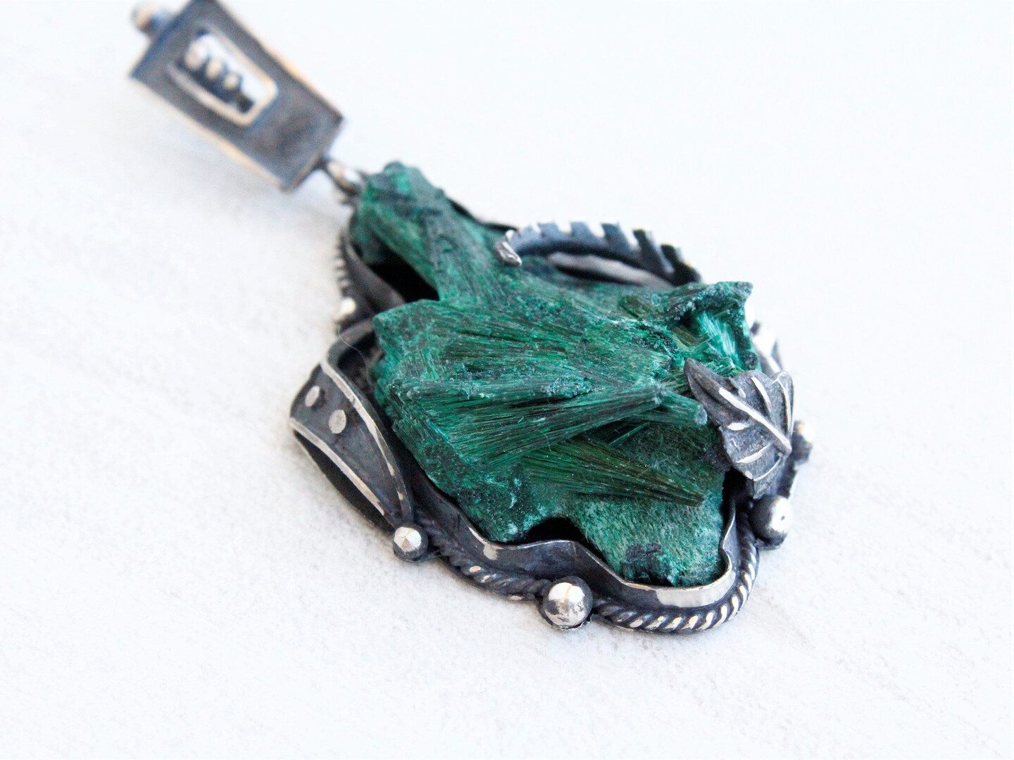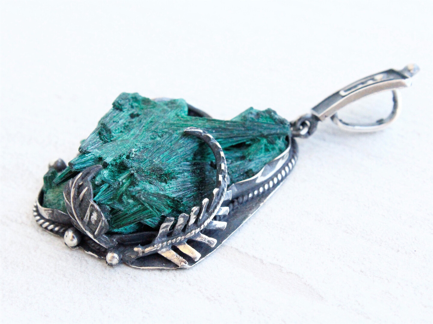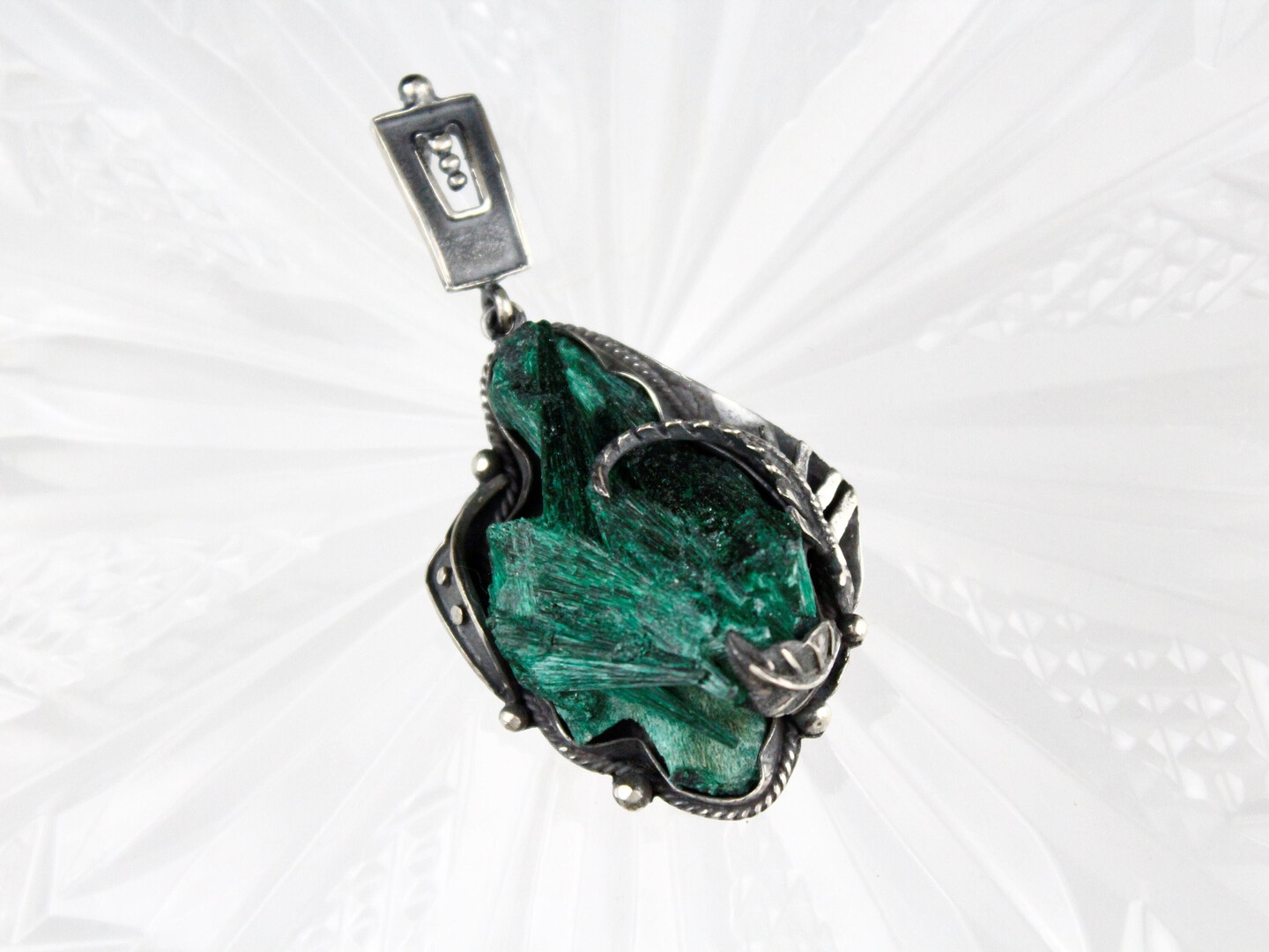 RAW Malachite Green Sterling Silver Pendant Necklace Handmade Jewelry, Healing Crystal Stone Large Floral Statement Pendant Armenian jewelry