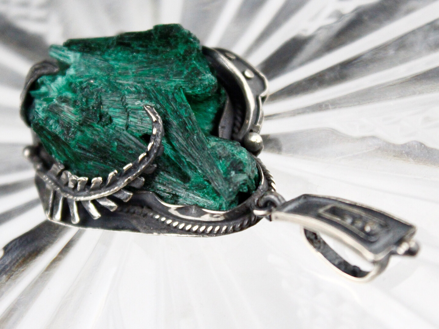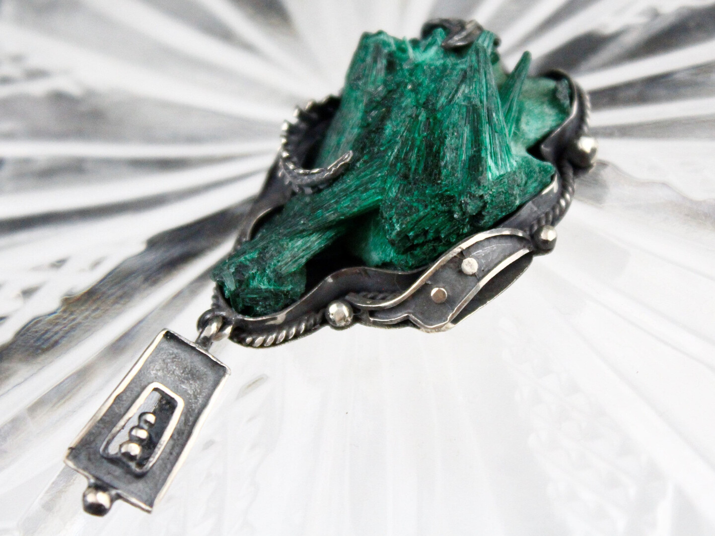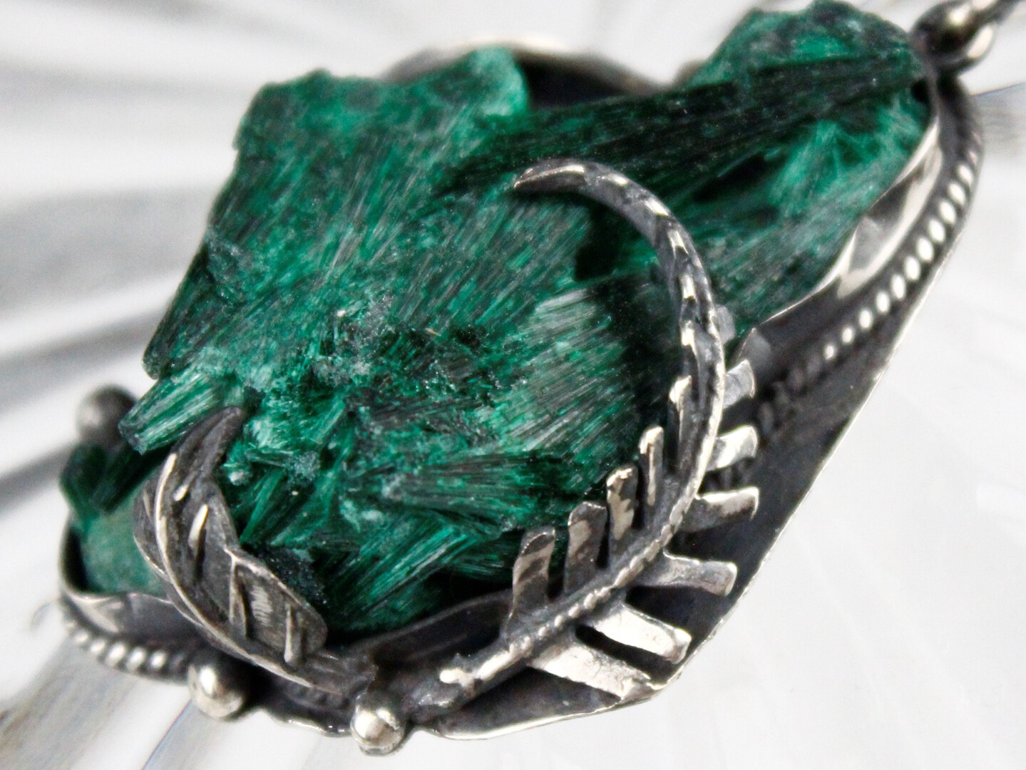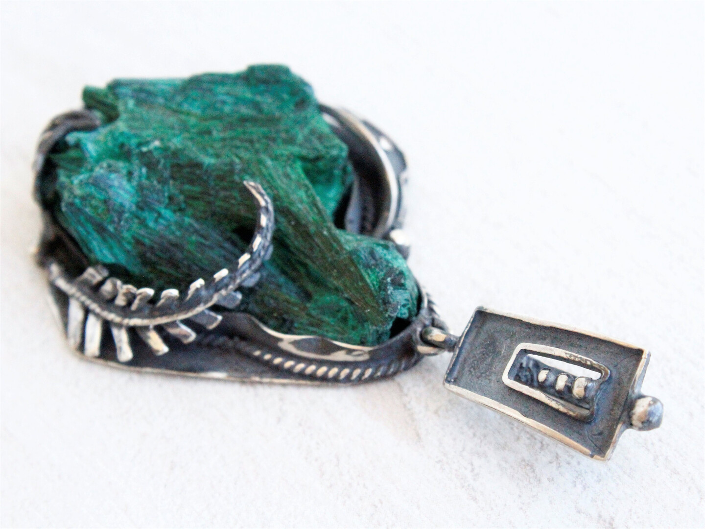 RAW Malachite Green Sterling Silver Pendant Necklace Handmade Jewelry, Healing Crystal Stone Large Floral Statement Pendant Armenian jewelry
